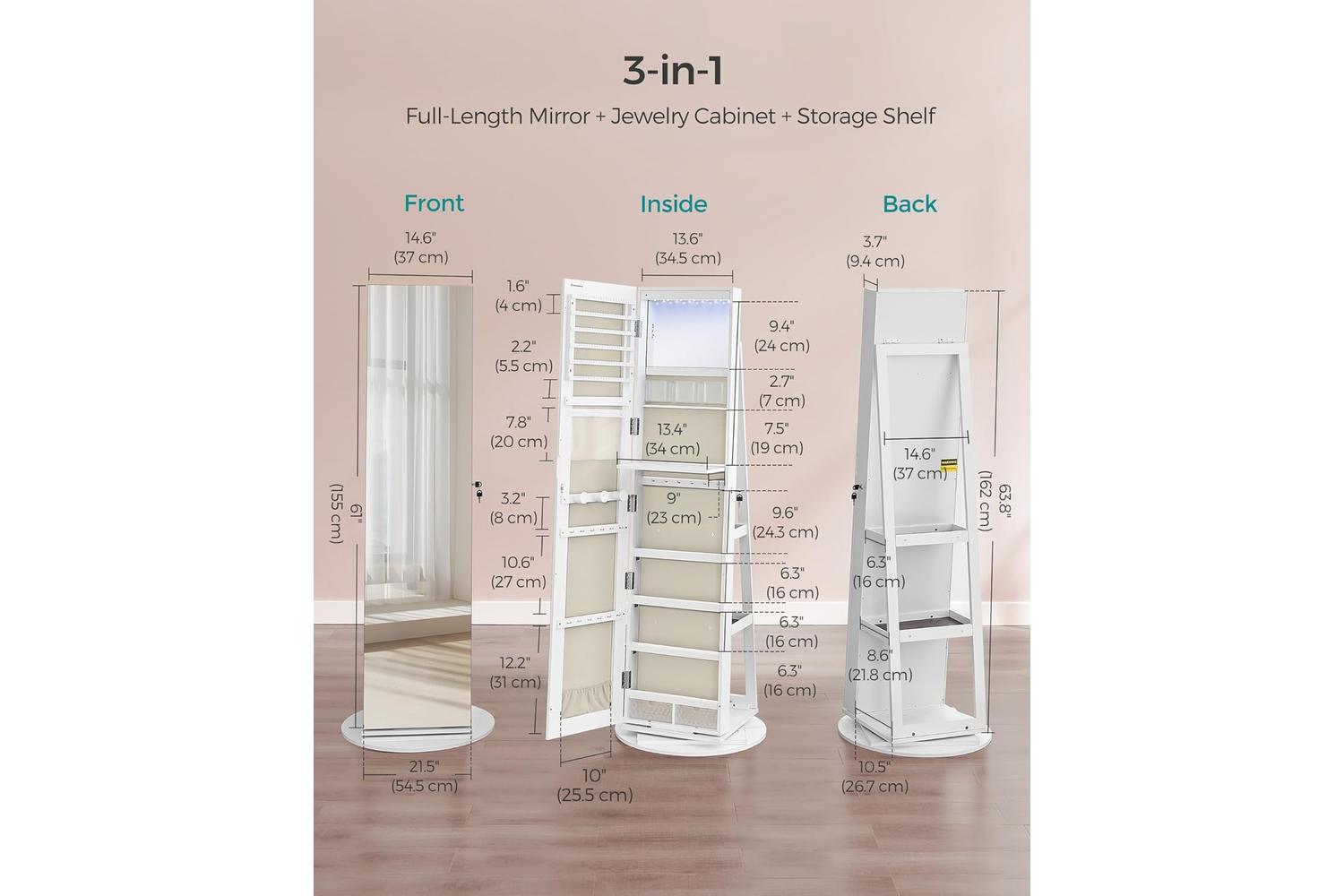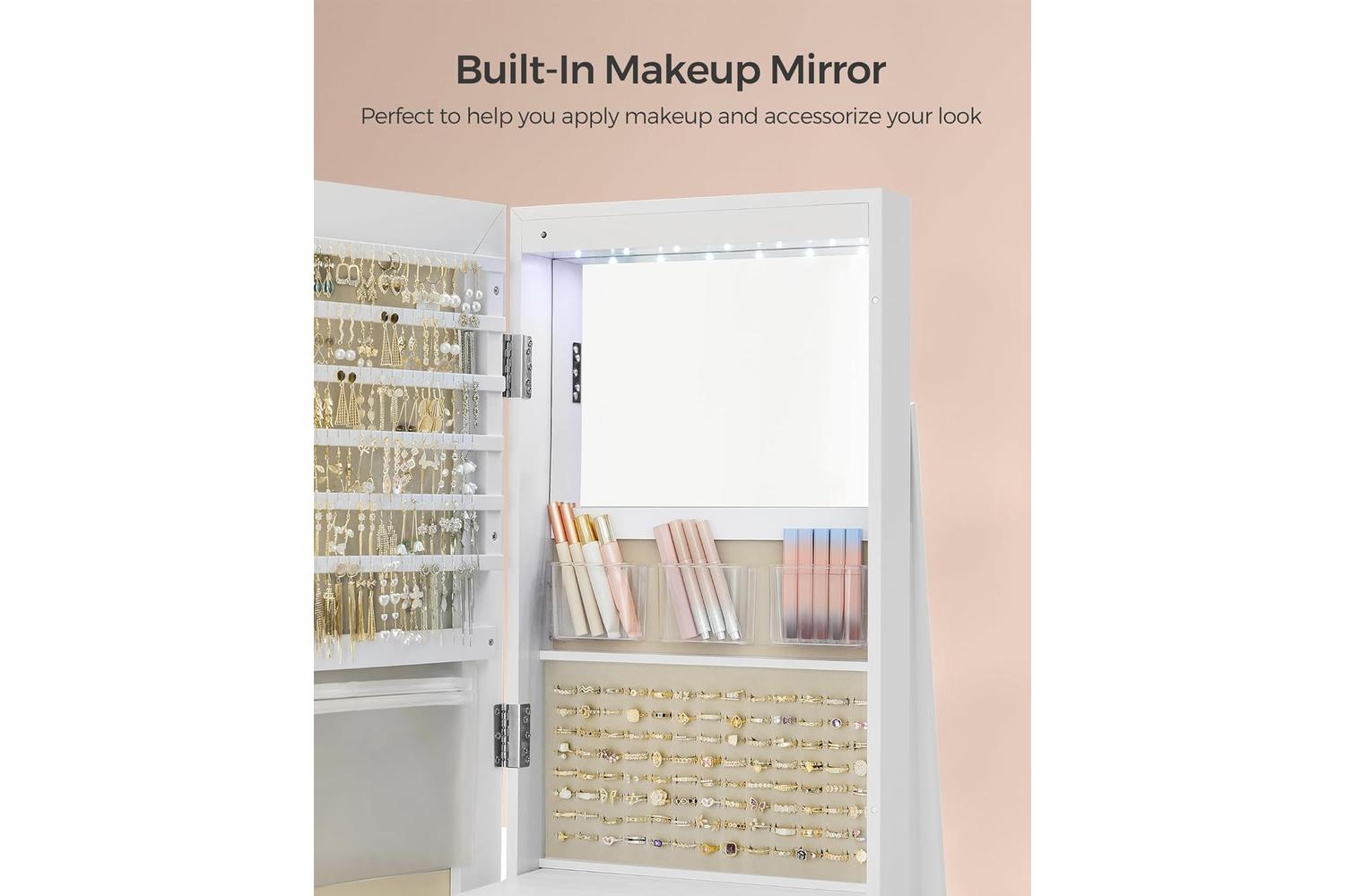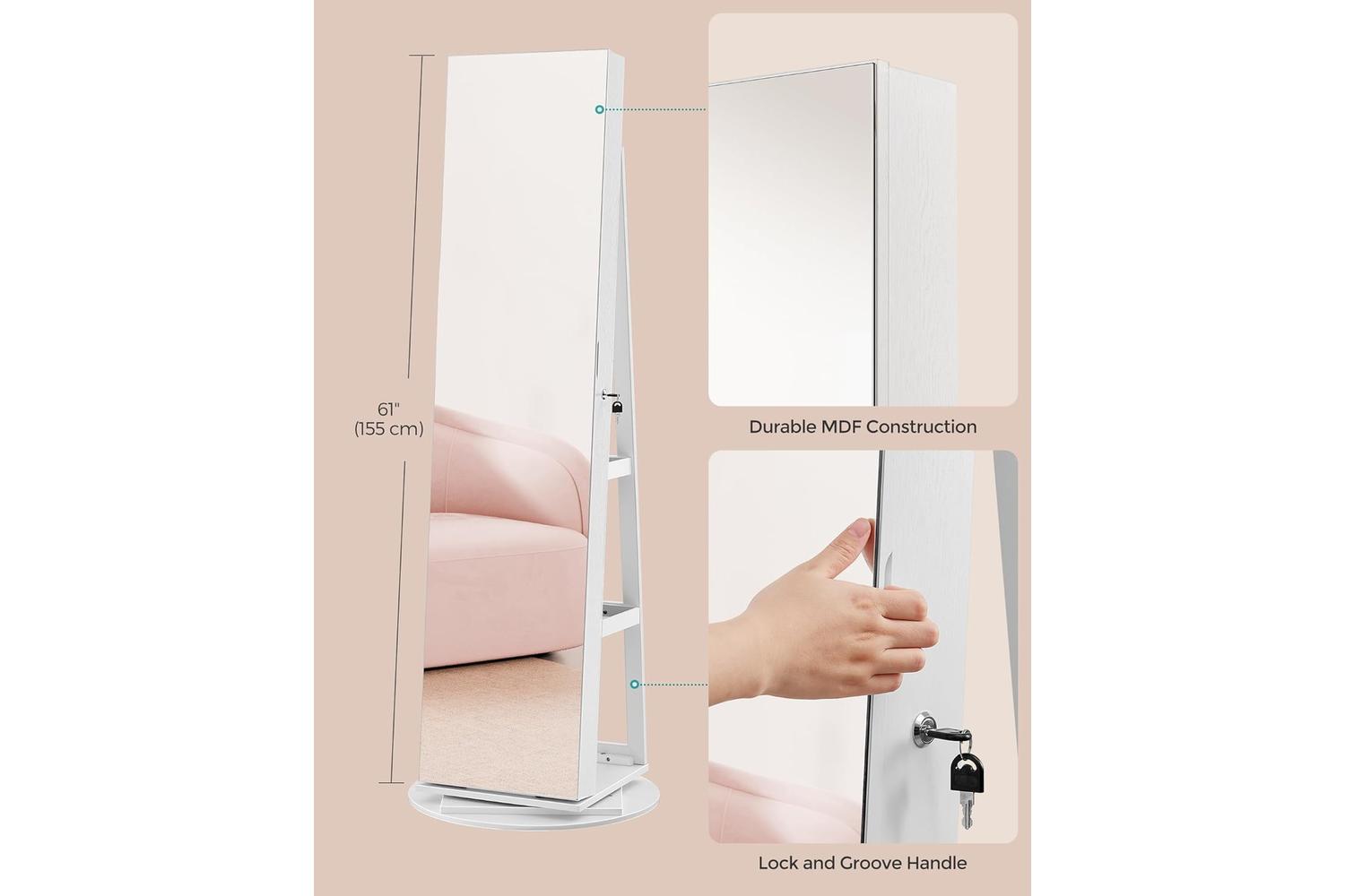 - Freestanding jewellery cabinet with full-length mirror