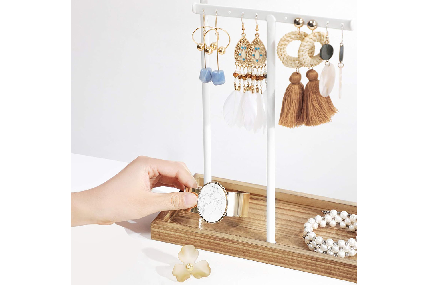 With 30 holes (10 per bar) in total, this jewellery rack offers a designated, classified place to keep your valuables like earrings, bracelets, necklaces beautifully displayed and easily accessible