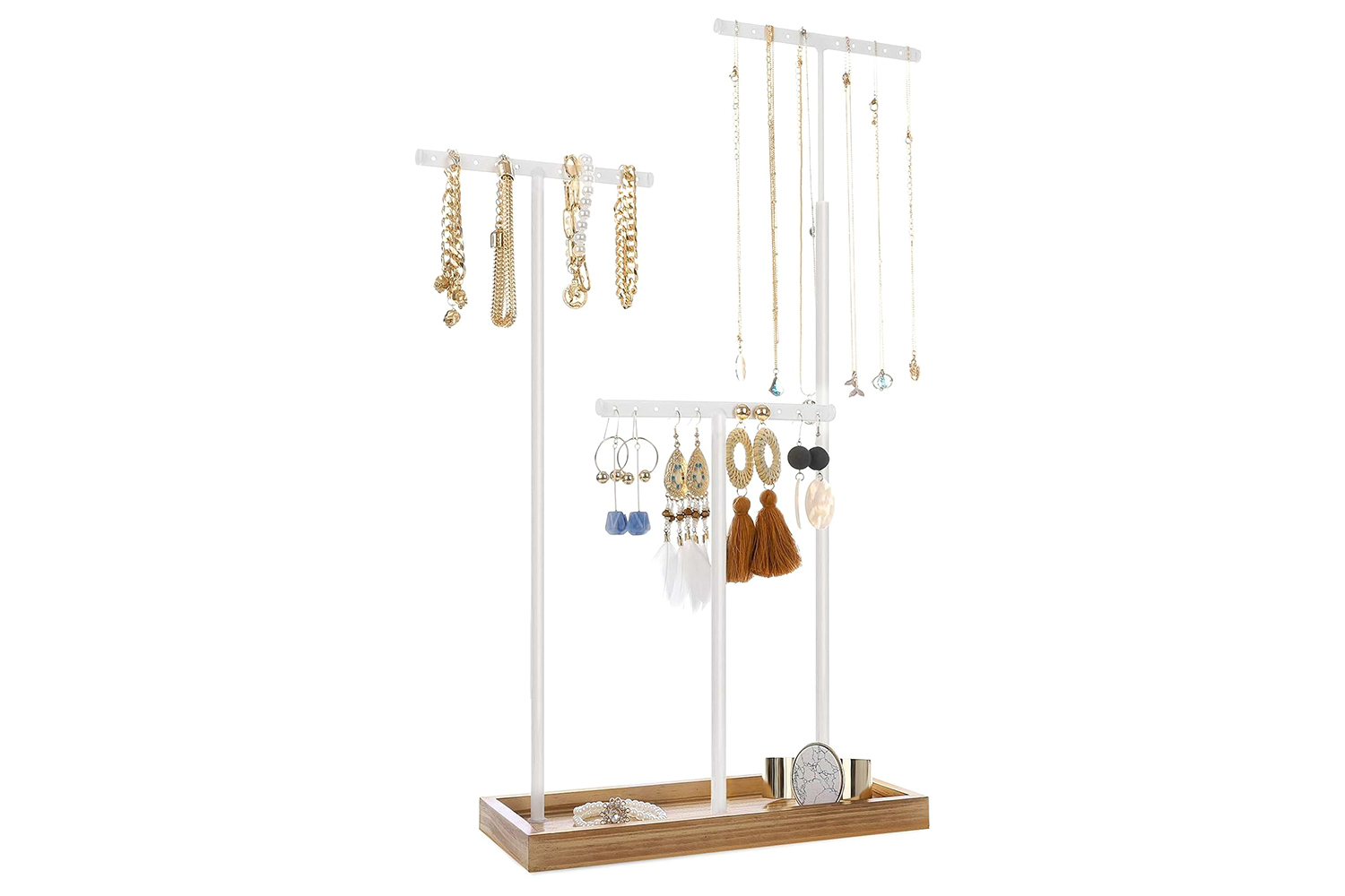 When was the last time you had trouble with tangled necklaces, lost earrings, or damaged jewellery? If the answer is "always,” do yourself a favour by opting for this jewellery stand with 3 metal bars.