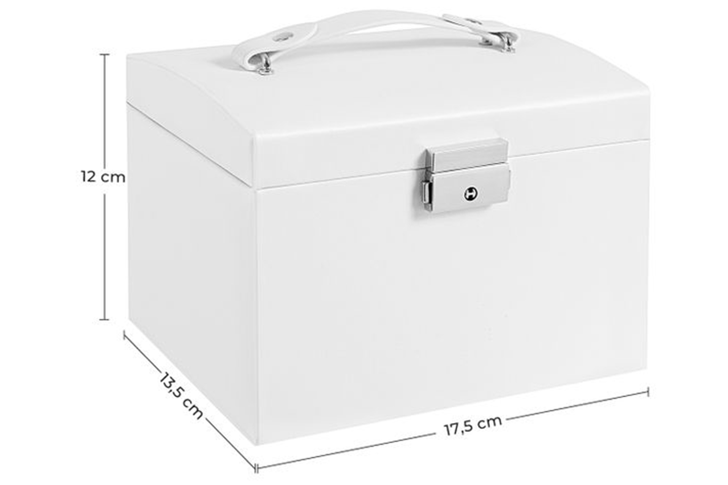 Songmics Jewelery Box Travel Jewelery Case Portable Lockable Jewelery Case with 2 Drawers Mirror Lock and Key Gift Idea White JBC154W01