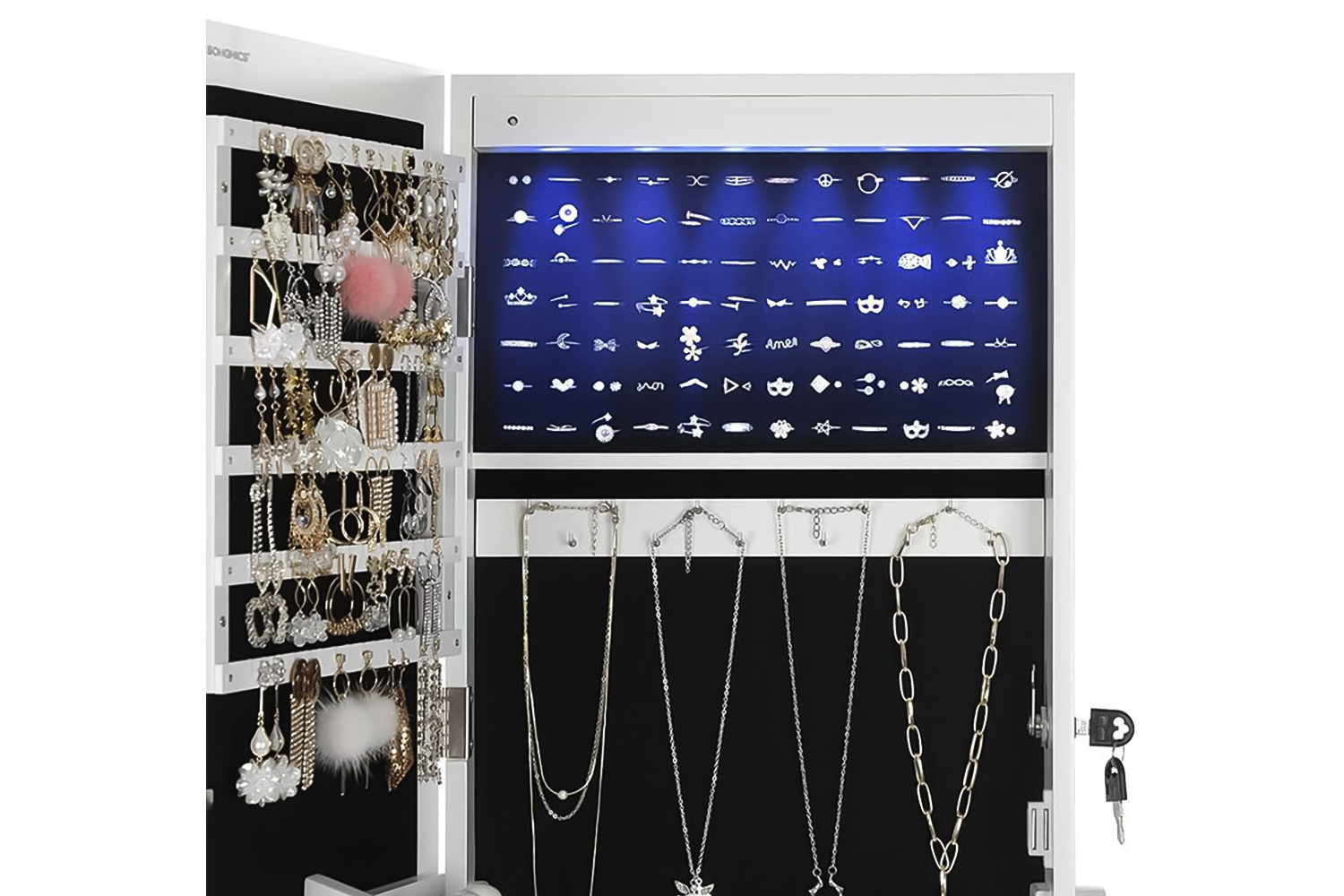 Jewelry Cabinet and Standing Mirror Two in One, and Safe to Stow Away: