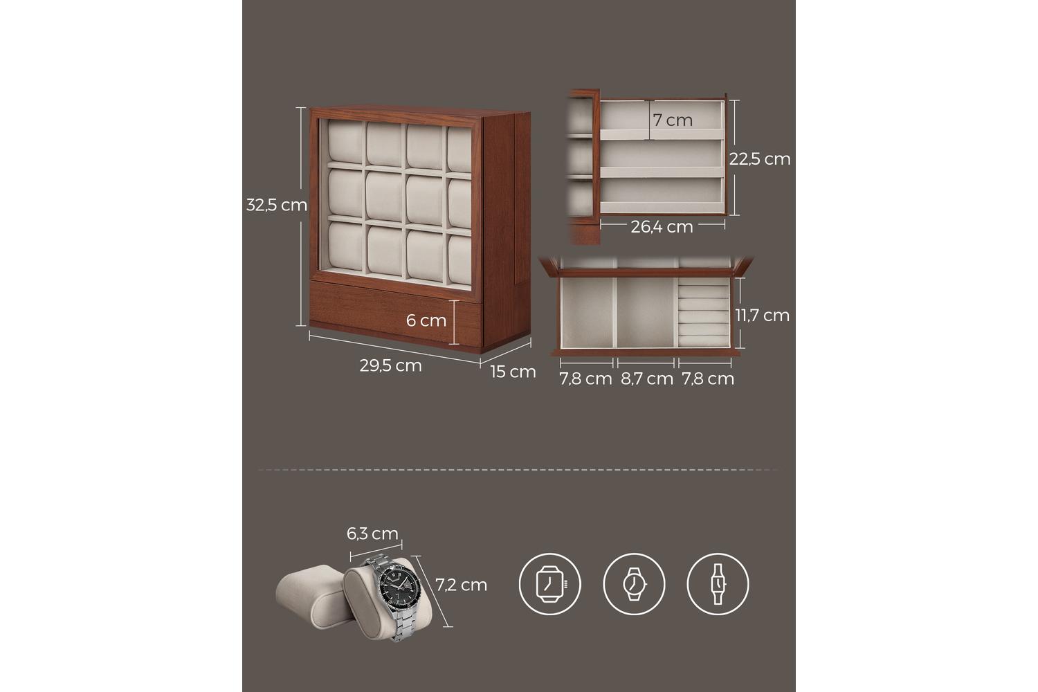 Durability meets design in this SONGMICS watch box. The sturdy construction and solid wood veneer offer long-lasting protection, while the modern aesthetic adds a touch of luxury to your home. It is not just a storage box—it is a statement piece that reflects your appreciation for quality and detail. This watch box also makes a thoughtful gift for birthdays, anniversaries, or any special occasion, sure to delight anyone who values organisation and elegance.