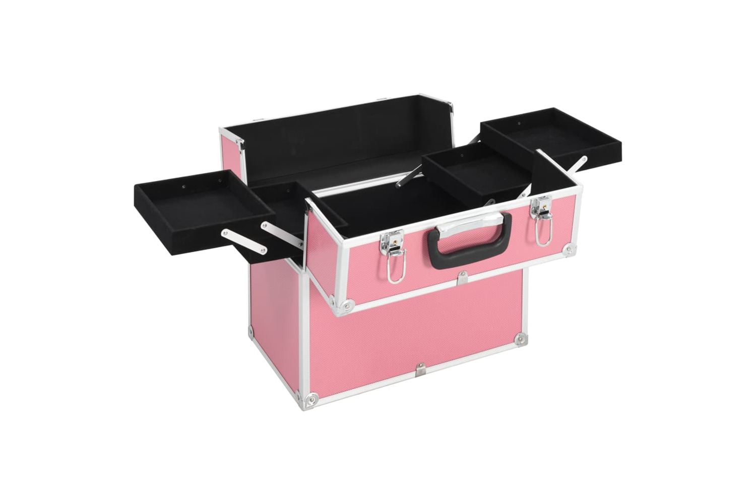 Made of wood, ABS sheeting, as well as aluminium, this make-up case will handily store your cosmetics and maintain them in perfect condition. This vanity case features an extendable top and trays, providing ample storage space for your cosmetics and beauty products. Additionally, it is characterized by a carrying handle which enables you to easily take along everywhere you go!