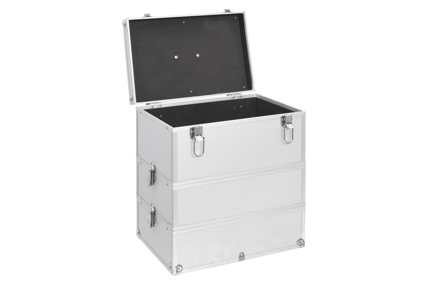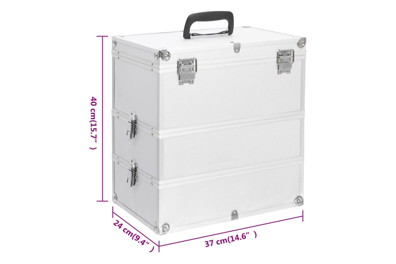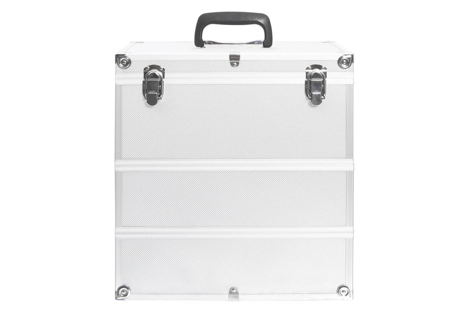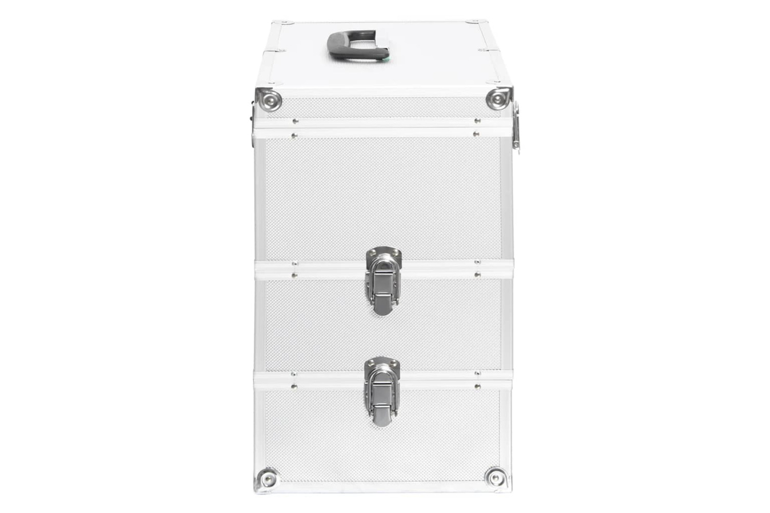 Made of wood, ABS sheeting, as well as aluminium, this make-up case will handily store your cosmetics and maintain them in perfect condition. This vanity case features 3 detachable tiers, providing ample storage space for your cosmetics and beauty products. Additionally, it features a carrying handle which enables you to easily take along everywhere you go!
