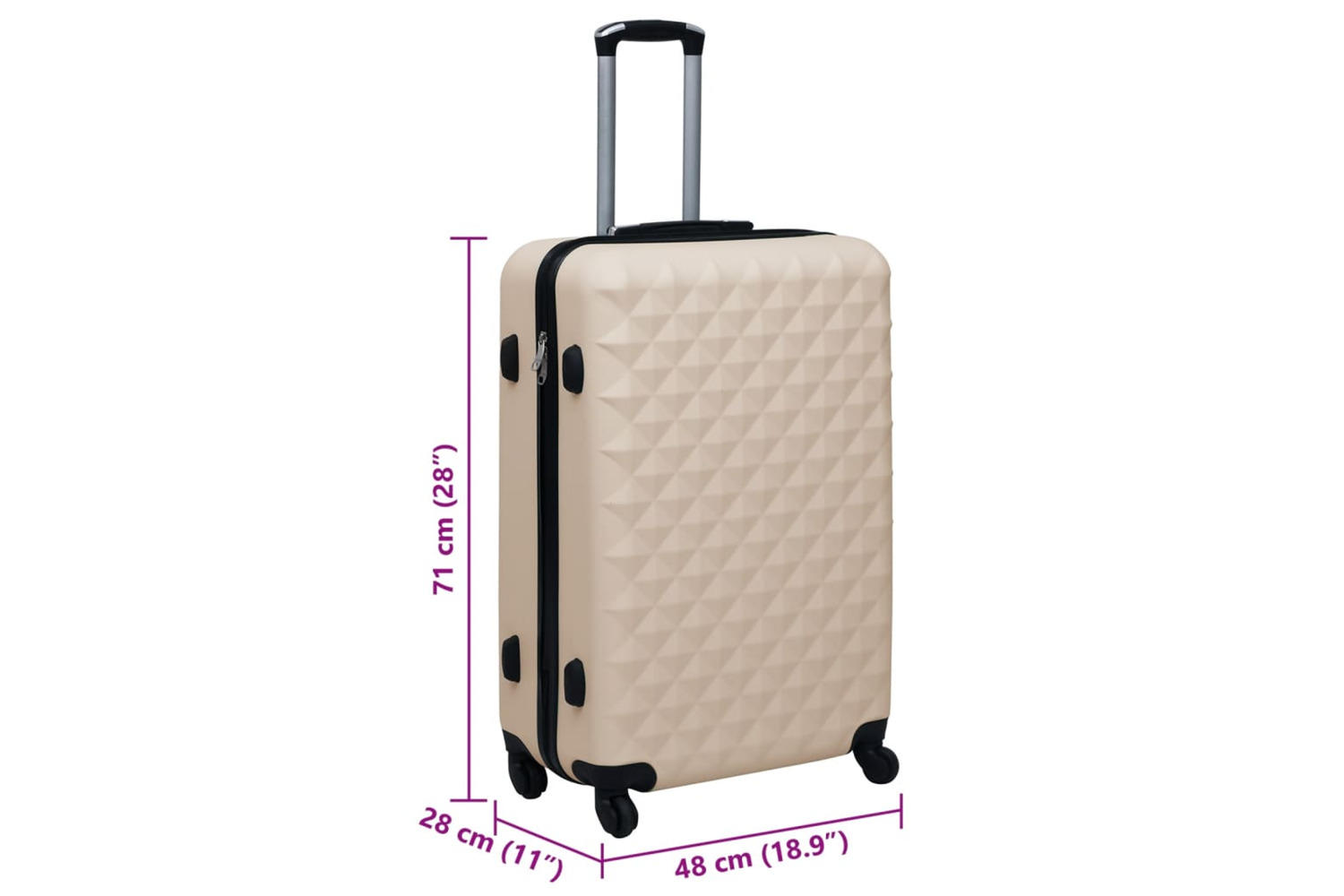 This suitcase has strong, durable ABS hard shells and security locks to keep your belongings safe. Its internal tensioning clothes straps guarantee your items well organised and in place. The trolley is equipped with one carrying handle on the top and four 360 degree castors, which provides you a comfortable travel experience.