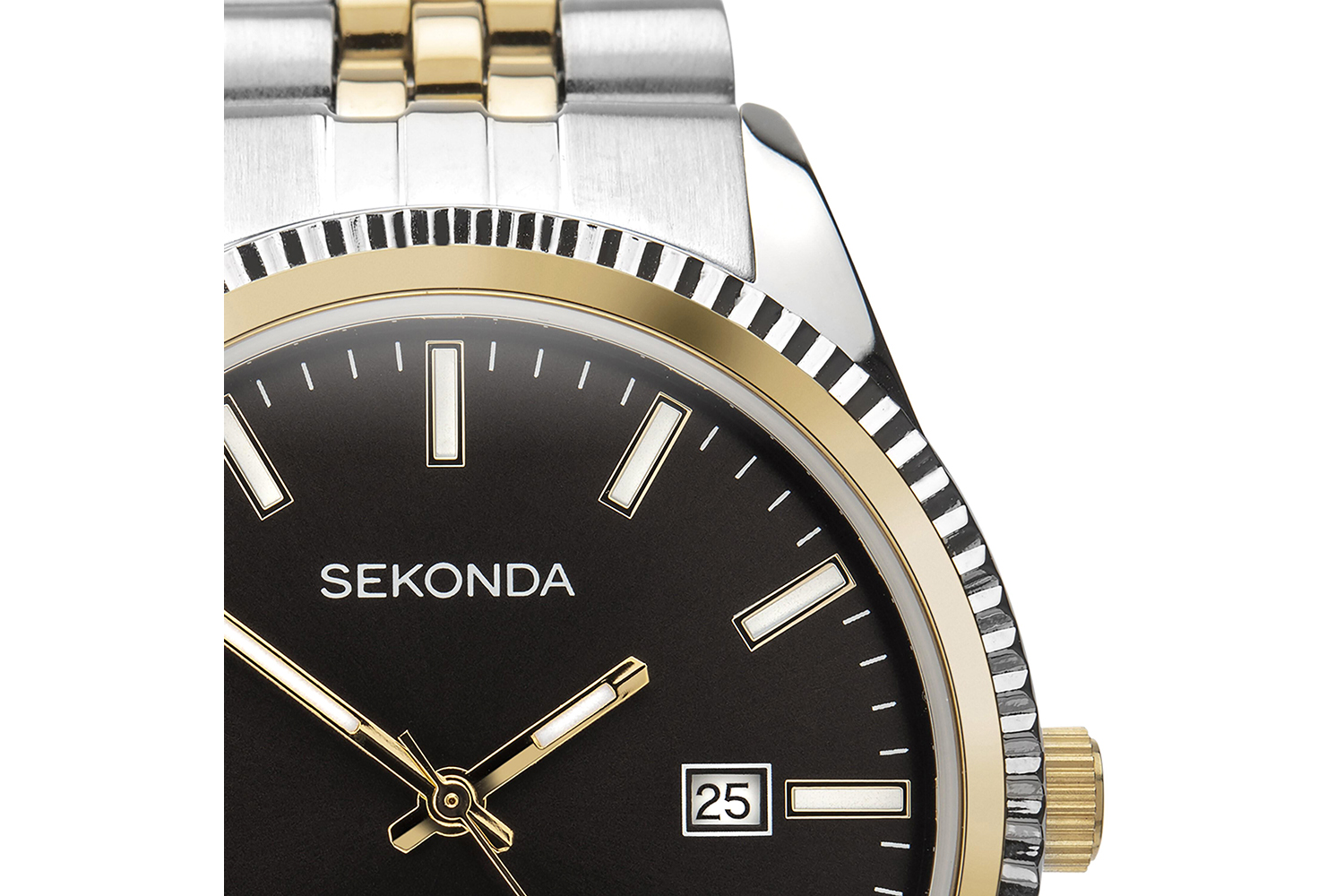 Display elegance as you keep time with the Sekonda King Mens Watch. Express your style with a dynamic blend of classic design and modern function that glorifies your wrist at every glance. Decorated in a fashionable two-tone case and stainless steel bracelet, this men's timepiece perfectly aligns with the demanding inclinations of the contemporary Irish man.