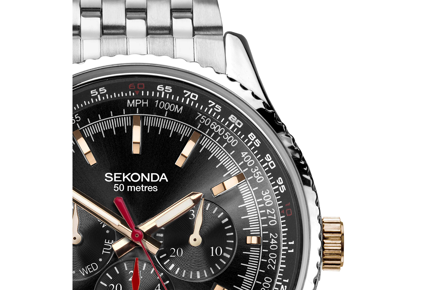 In the fast-paced world we live in, an accessory that tells time is indeed indispensable. But the Sekonda Maverick Men's watch goes beyond that. Its round, silver ion-plated alloy case is spared from the usual wear and tear, keeping it sleek and presentable at all times. The black chapter ring adds an element of modern edginess, whilst the black dial speaks of timeless elegance. Ensuring the perfect fit around any wrist is the stainless steel bracelet, known for its anti-corrosive properties and lustrous appeal.