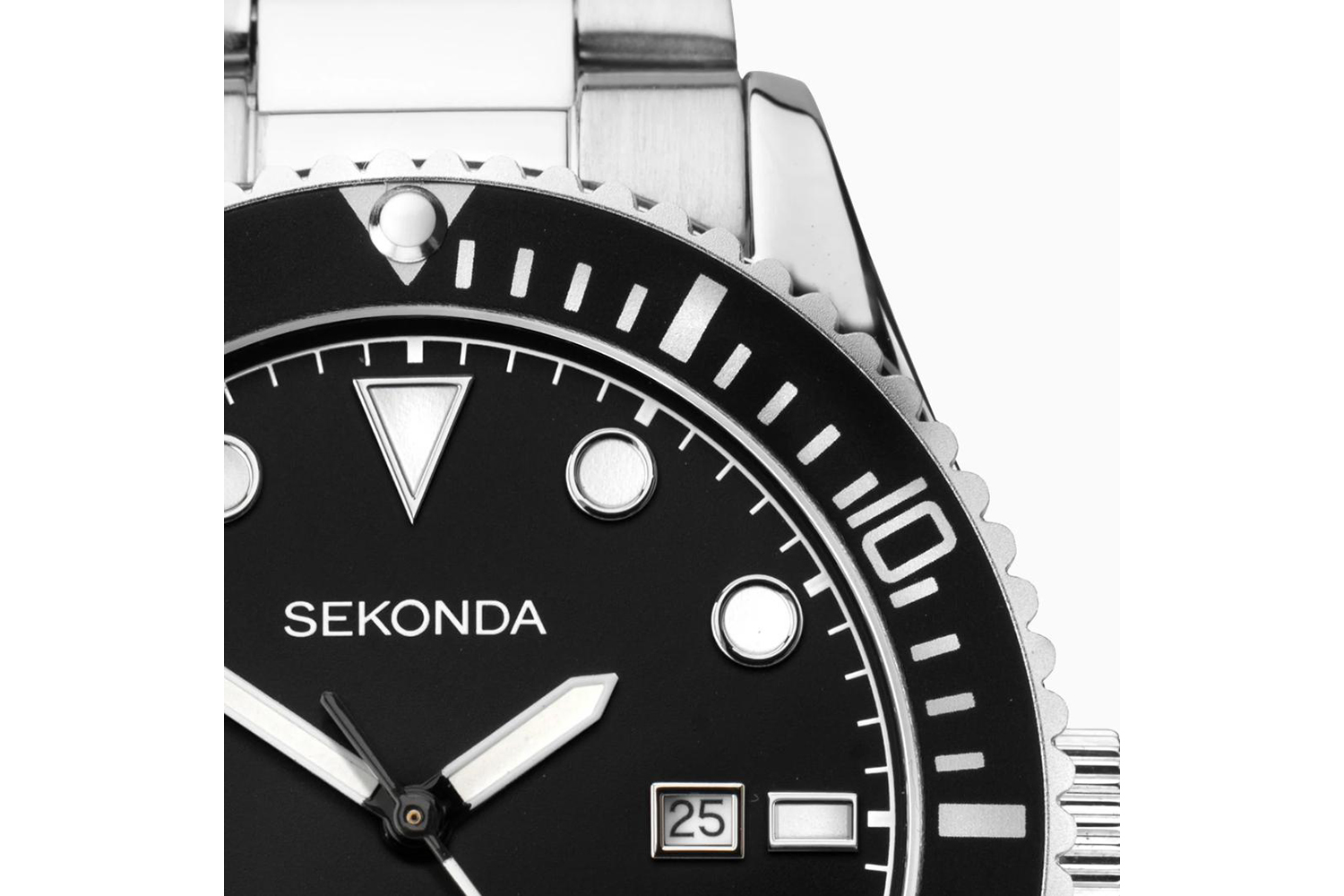 The shimmering silver pearlescence of the case synergistically blends with the handsomely rugged black dial, creating a harmonious novel play of light and shade - an emblematic emblem of the design philosophy of the SEKONDA mens watch collection. This extraordinary fusion integrates wonderfully with trimmed details, setting the tone for a fashion celebration every fashion connoisseur will relish.