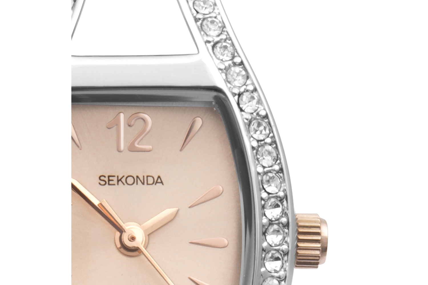 Timeless elegance meets modern sophistication with the SEKONDA Cocktail ladies watch. Renowned for its stylish and functional design aesthetic, this exquisite accessory beautifully blends silver and rose gold tones for a contemporary, upmarket appeal. Designed with the discerning Irish woman in mind, this truly elegant timepiece scores high on style, durability, and functionality.