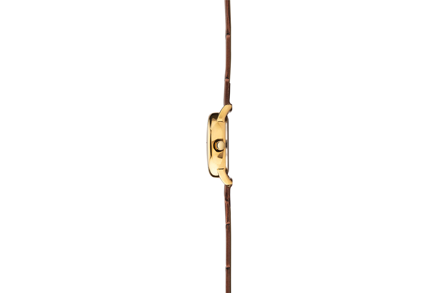 Surrounding the dial, is the case dozing in a wine-tinted palette, constructed using a resistant and lightweight alloy; perfect for durability without compromising on style. Complementing the case is a chic dark brown leather strap elegantly fastened. Its refined look can be effortlessly adjusted to achieve the ideal fit, thanks to a strap length that ranges from 145mm to 185mm.