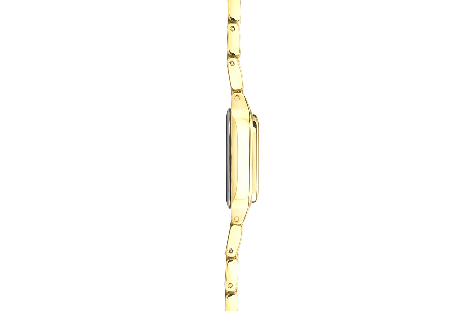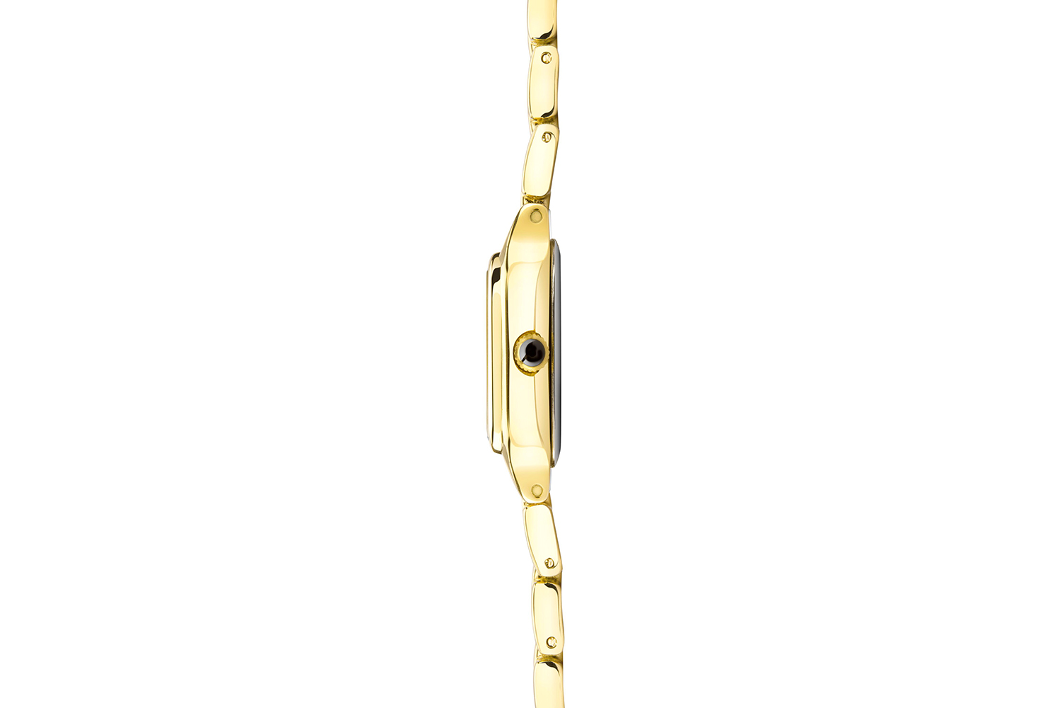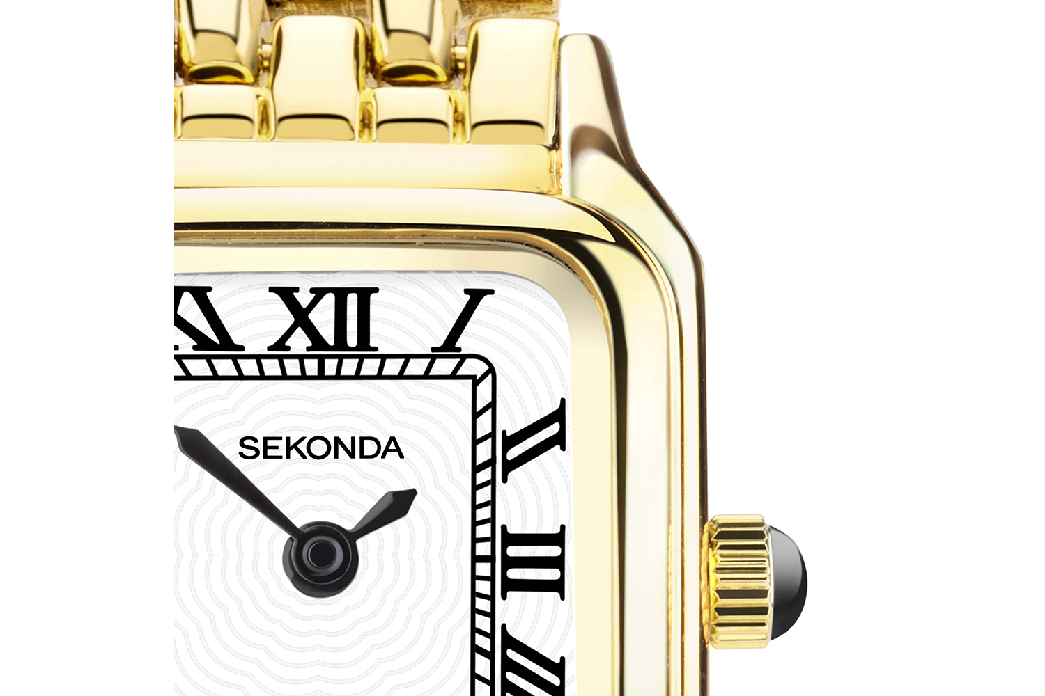 - Gold ion-plated alloy case with a stunning white dial and expressive black Roman numerals