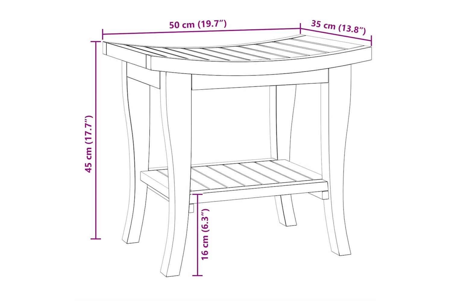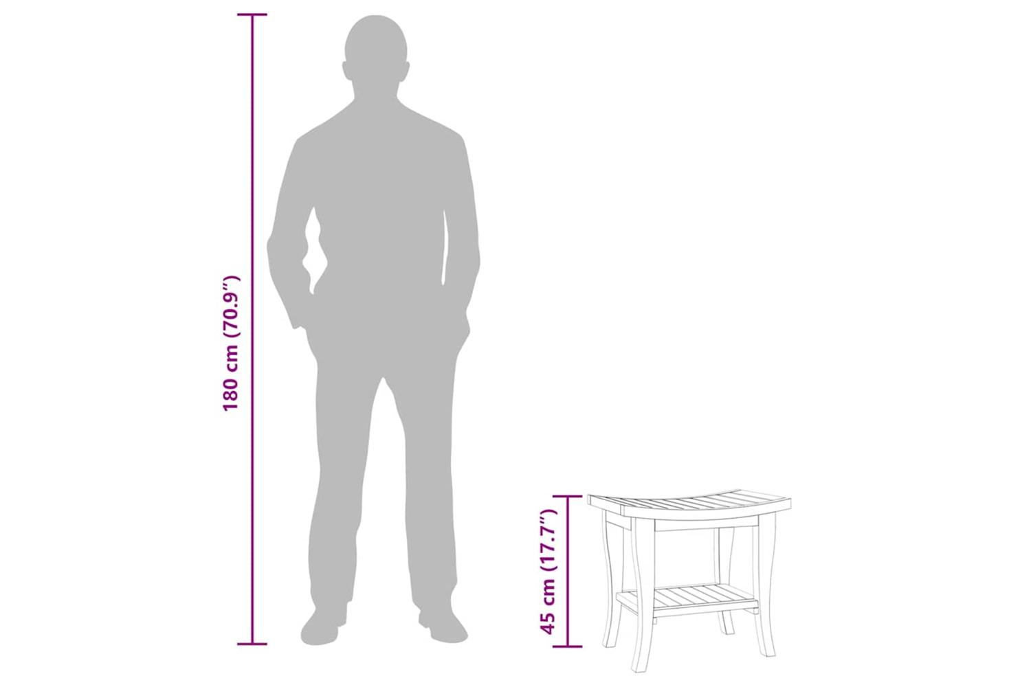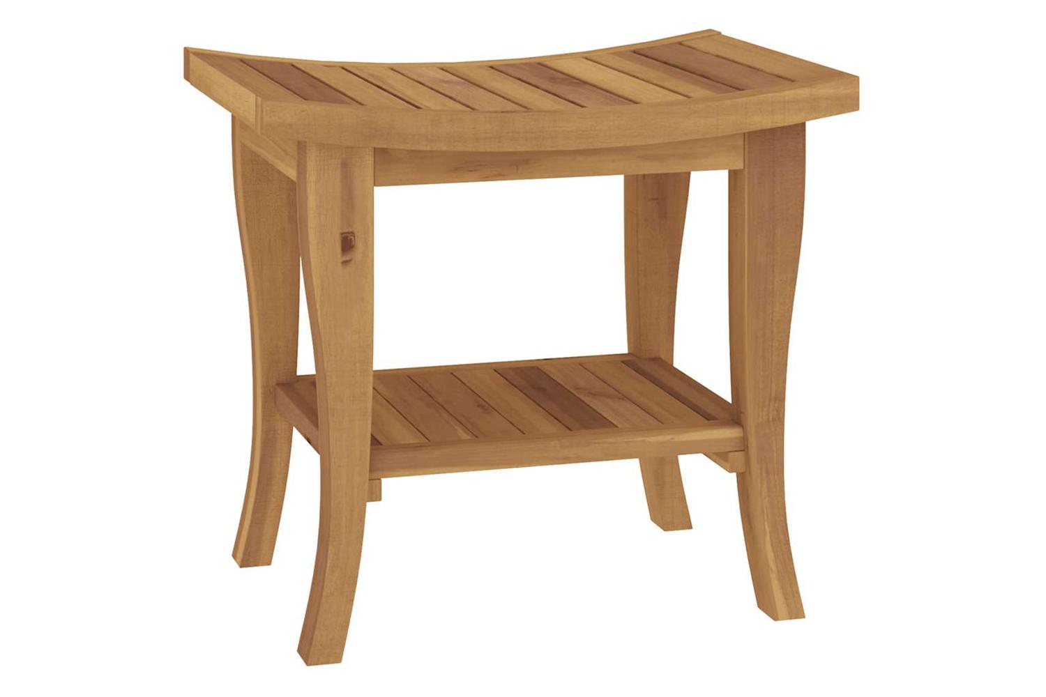 This wooden bathroom side table is a perfect choice for holding towels and bath accessories in the shower. Solid teak wood: Solid teak wood is a beautiful natural material. It has been seasoned, kiln dried and then treated with a rustic finish. Teak wood is known for its exceptional strength and weather resistance.Storage shelf: The teak side table holds up to 10 kg, ideal for storing your bath essentials such as bath towels, soap, shampoos, lotions, body wash, or scented candles, all these shower necessities are within easy reach. It is not suitable for sitting at all.Easy-to-clean surface: The smooth surface makes the bathroom accent table easy to clean with a damp cloth.
