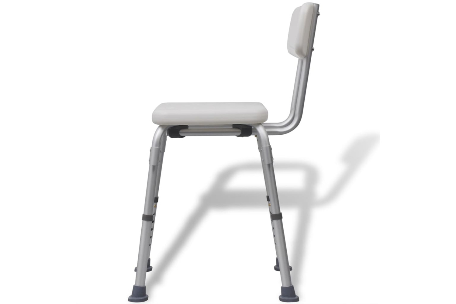 This durable shower seat can support up to 100 kg and is able to withstand repeated use in the shower. The plastic seat has drainage holes to make sure water never pools, and to reduce the risk of slipping. Made of strong aluminium, the shower chair is lightweight and sturdy. This bath chair is adjustable in height, while the backrest can be moved backwards and forwards to meet your personal needs.
