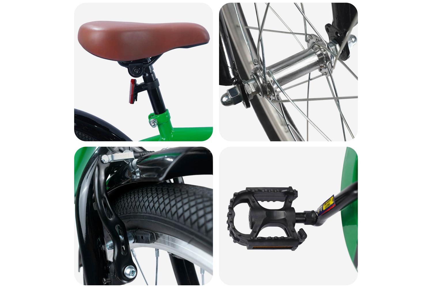 - Safety First Design: Equipped with a classic brake lever system, this bike offers effective stopping power crucial for safety. The intuitive design ensures kids can brake confidently, empowering them with control during their rides. Coupled with steel rims, it maintains reliable traction during sudden stops or wet conditions.