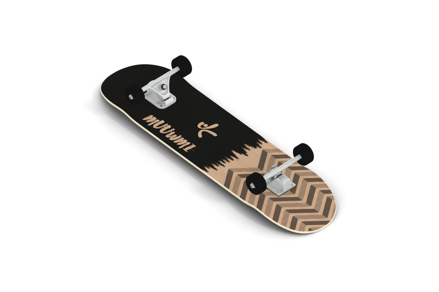 Skateboard made of high quality 7-ply maple wood Forest Design 79 x 20 cm deck, double kick, concave shape Non-slip grip tape with logo print 5 inch Seagull aluminium trucks, base PU Cushion 50 x 30 mm cast PU wheels , High rebound ABEC 7 ball bearings Maximum user weight 100 kg/220 lbs.