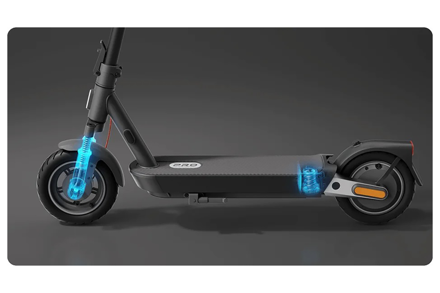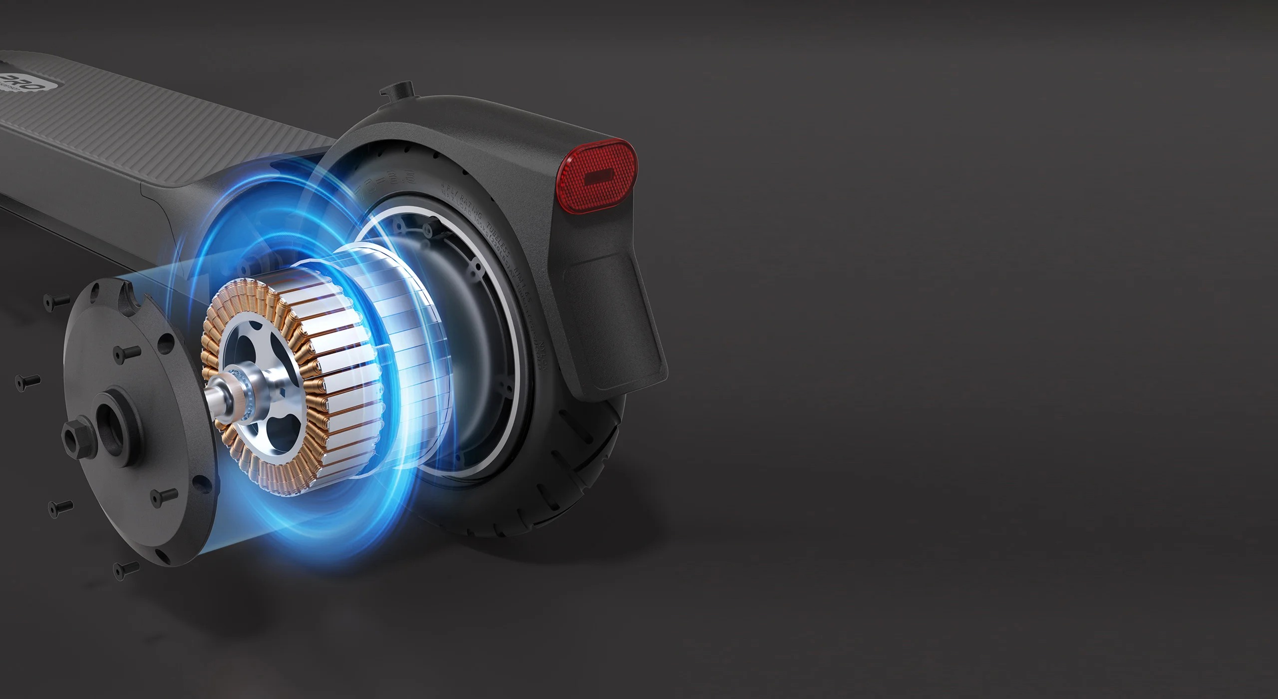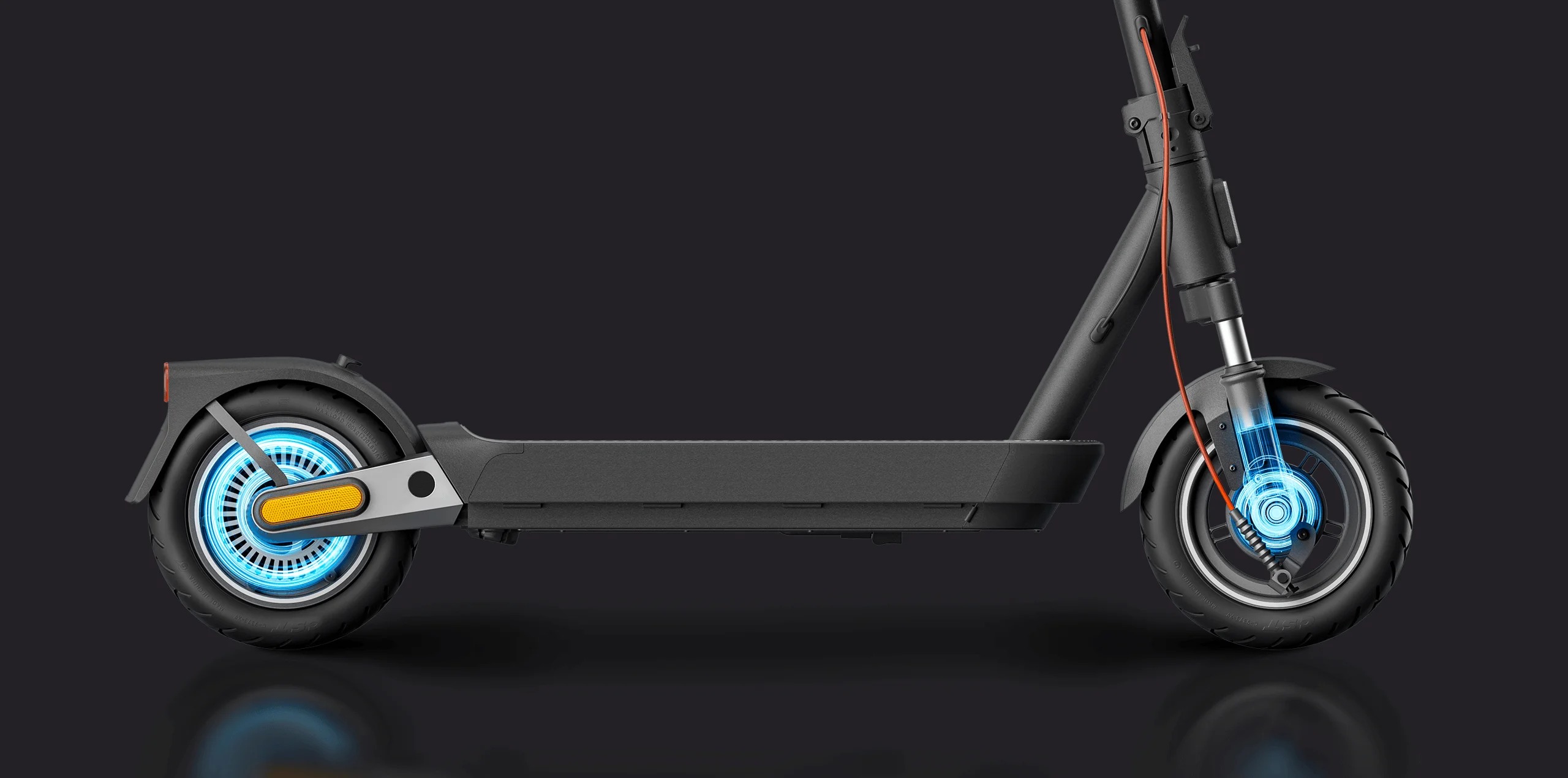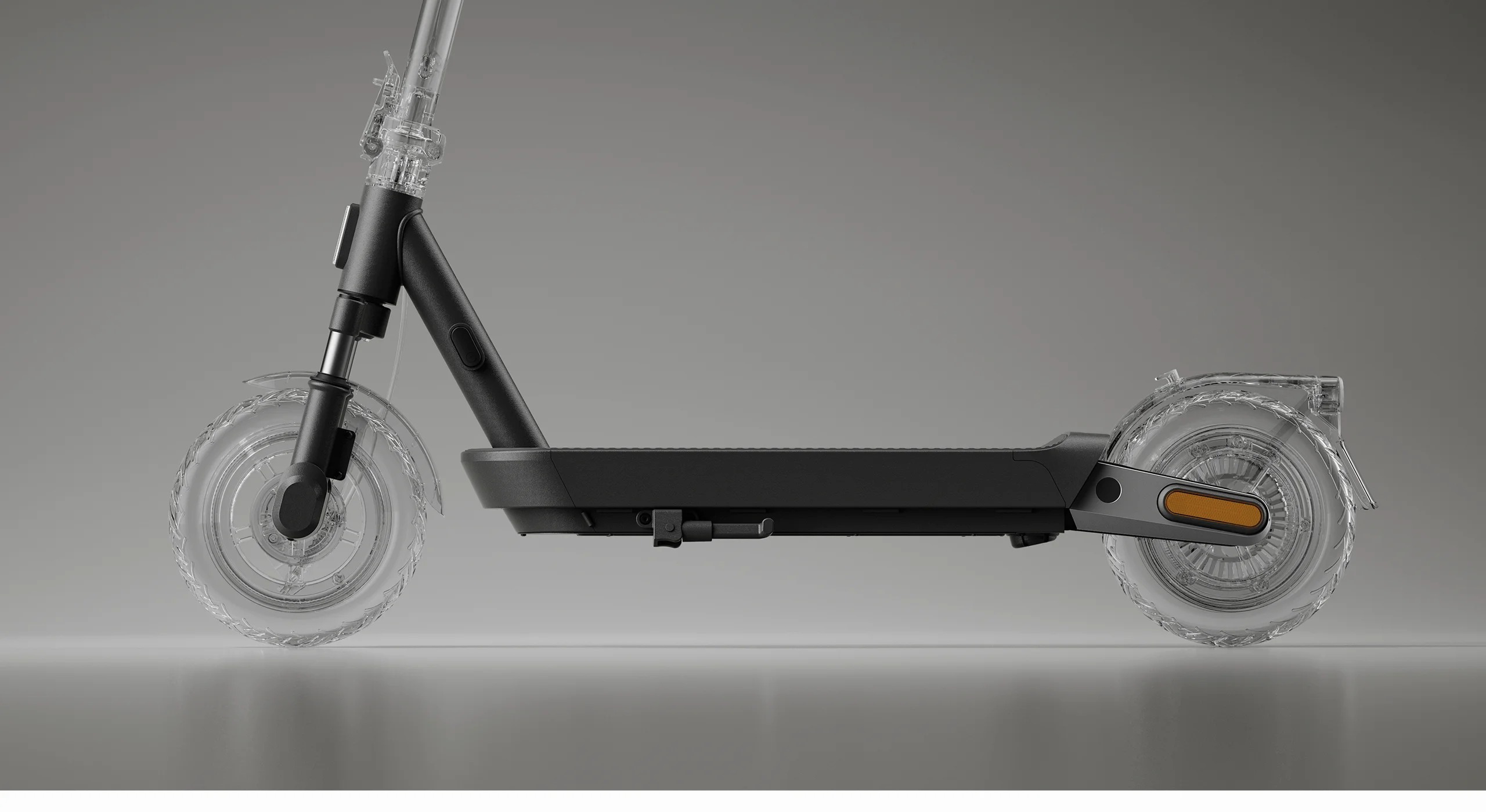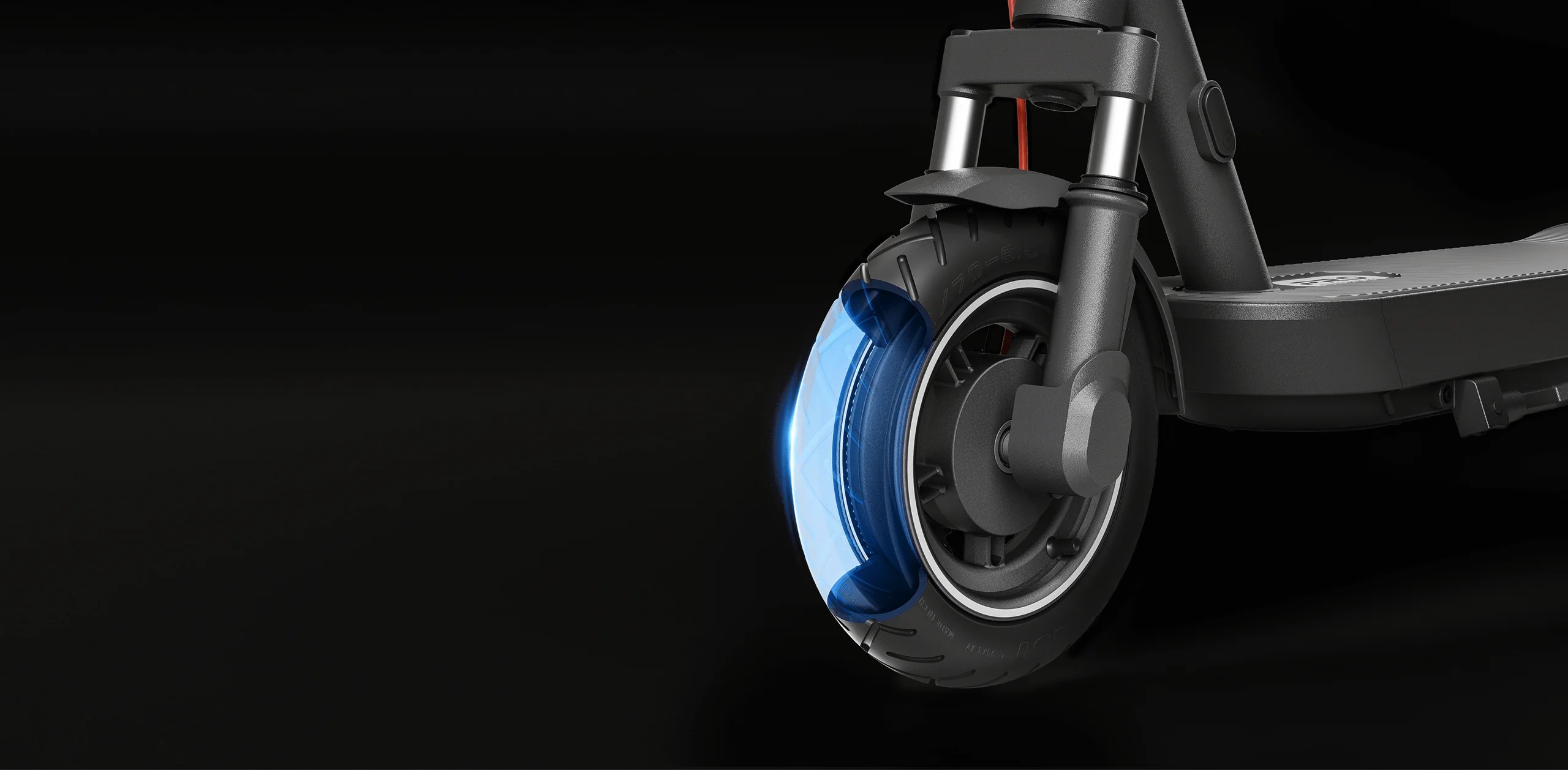 The scooter features 10-inch 60mm* tubeless tires designed for excellent airtightness and superior shock absorption. The wide contact area with the ground ensures strong traction during turns, delivering safe and stable rides.