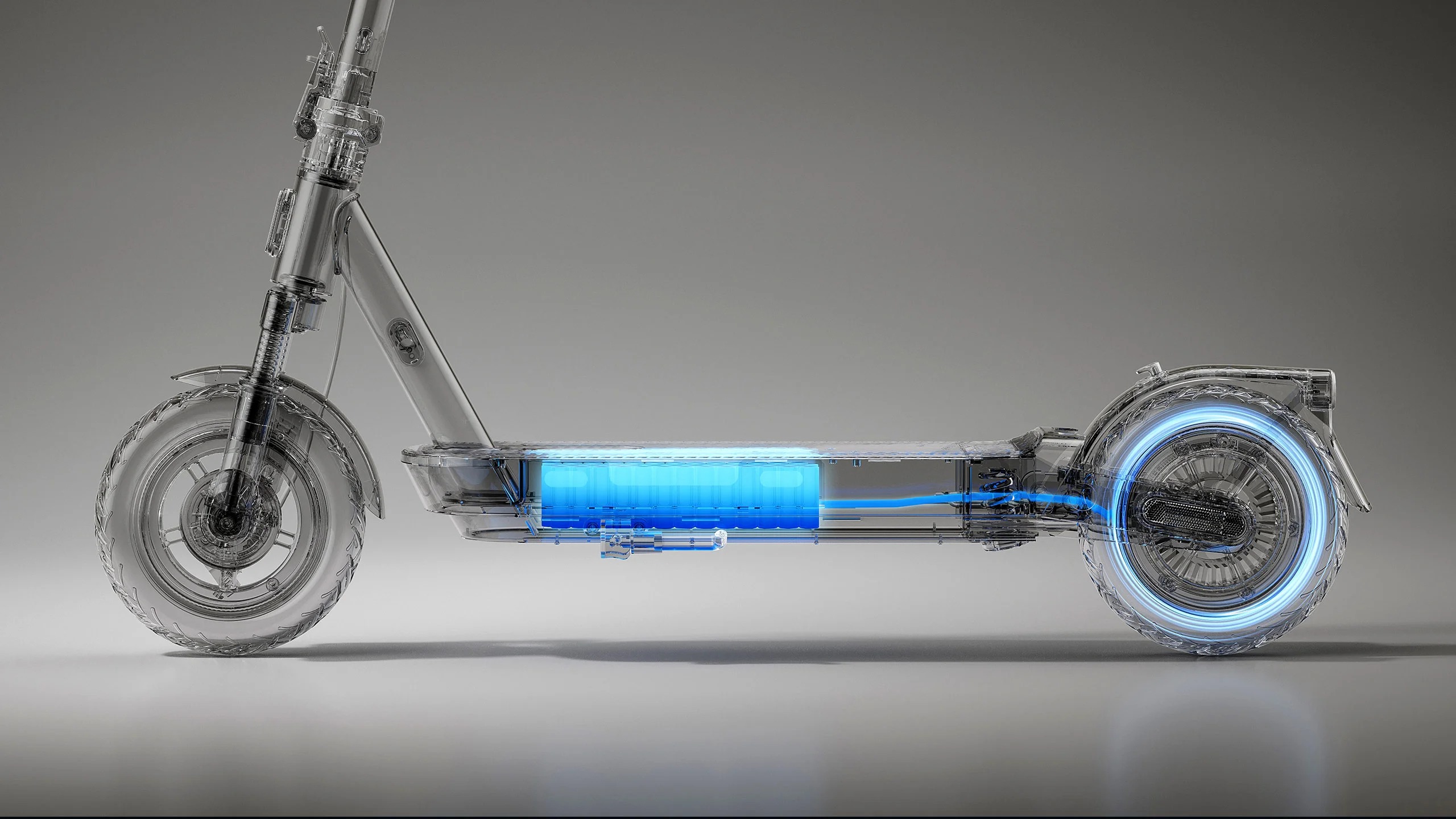 The kinetic energy generated during gliding is converted into usable electrical energy to increase the riding range further.