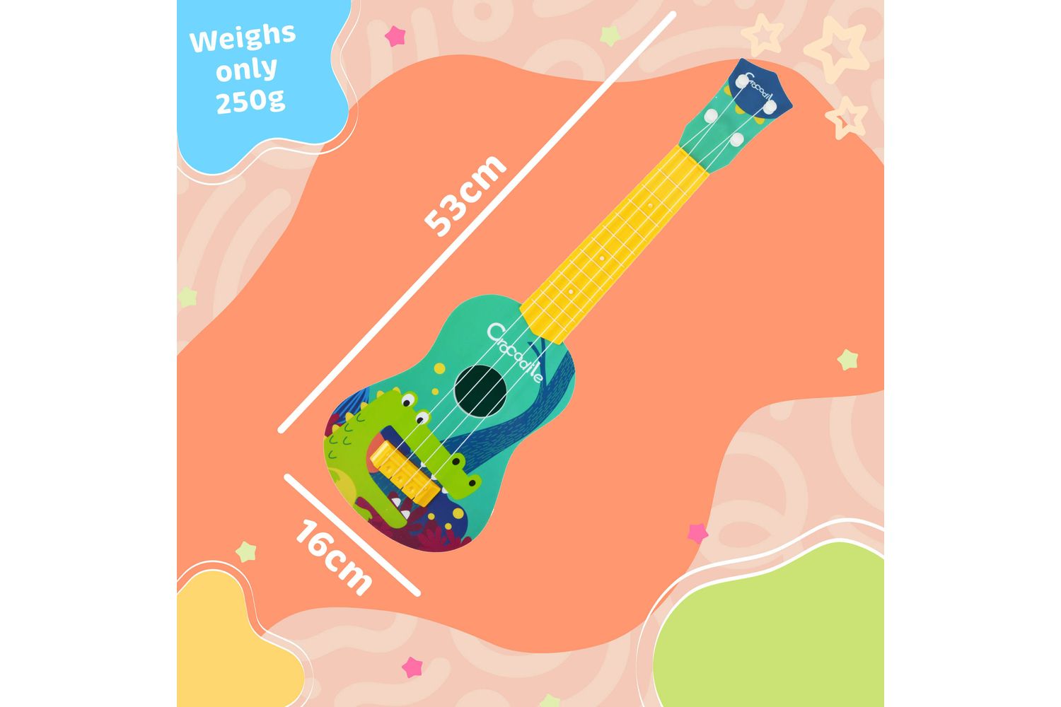 Get ready to ignite a passion for music in your little ones with our Little Star Crocodile Ukulele. Constructed for our junior clientele's nimble fingers, this playful and compact musical toy captures the imagination of kids, transporting them into the vibrant world of tunes, rhythms and melodies. Whether your child is a budding musician or a curious scamp always exploring, this is the perfect musical toy for them.