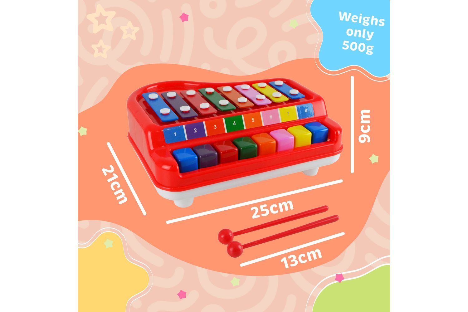 - Colourful Design: Vibrant, educational multi-coloured keys