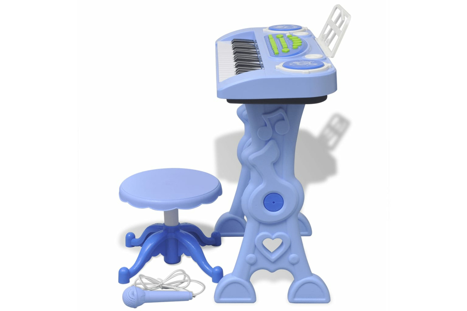 Through a great variety of sounds, rhythms and noises, your children’s hearing and musical abilities will be extensively trained. The blue colour and its traditional look make the keyboard look just like the real thing. Its shatterproof, plastic material and sturdy construction make it durable and easy to clean.