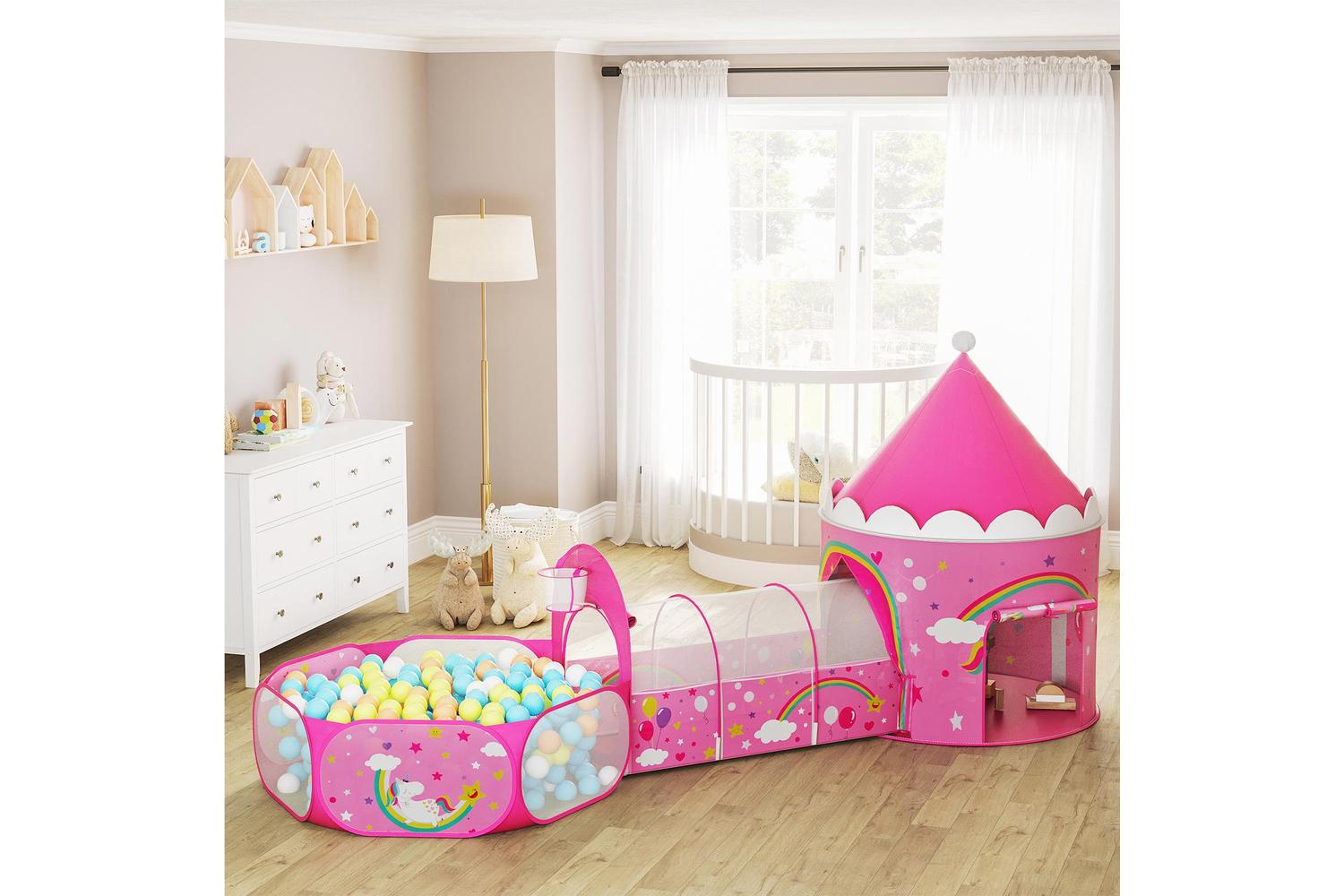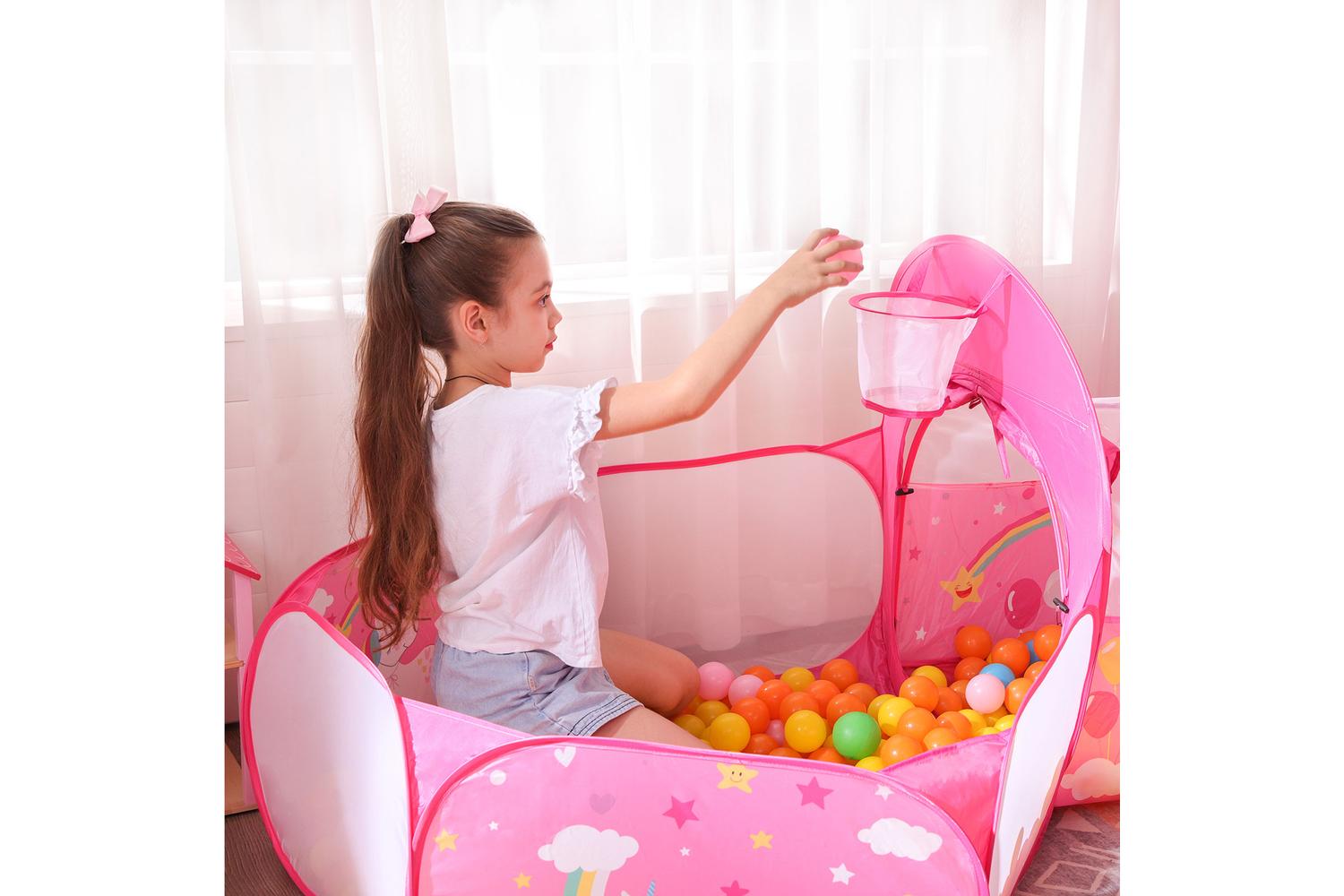 Perfect for playdates, birthday parties, or quiet solo play, this play tent set is easy to set up and just as simple to pack away. The included carry bag makes it convenient to transport, so you can bring the fun to grandparents' houses, parks, or holiday getaways. The cheerful pink colour and engaging features like the basketball hoop add an extra layer of excitement, making this play tent a favourite among kids and parents alike.