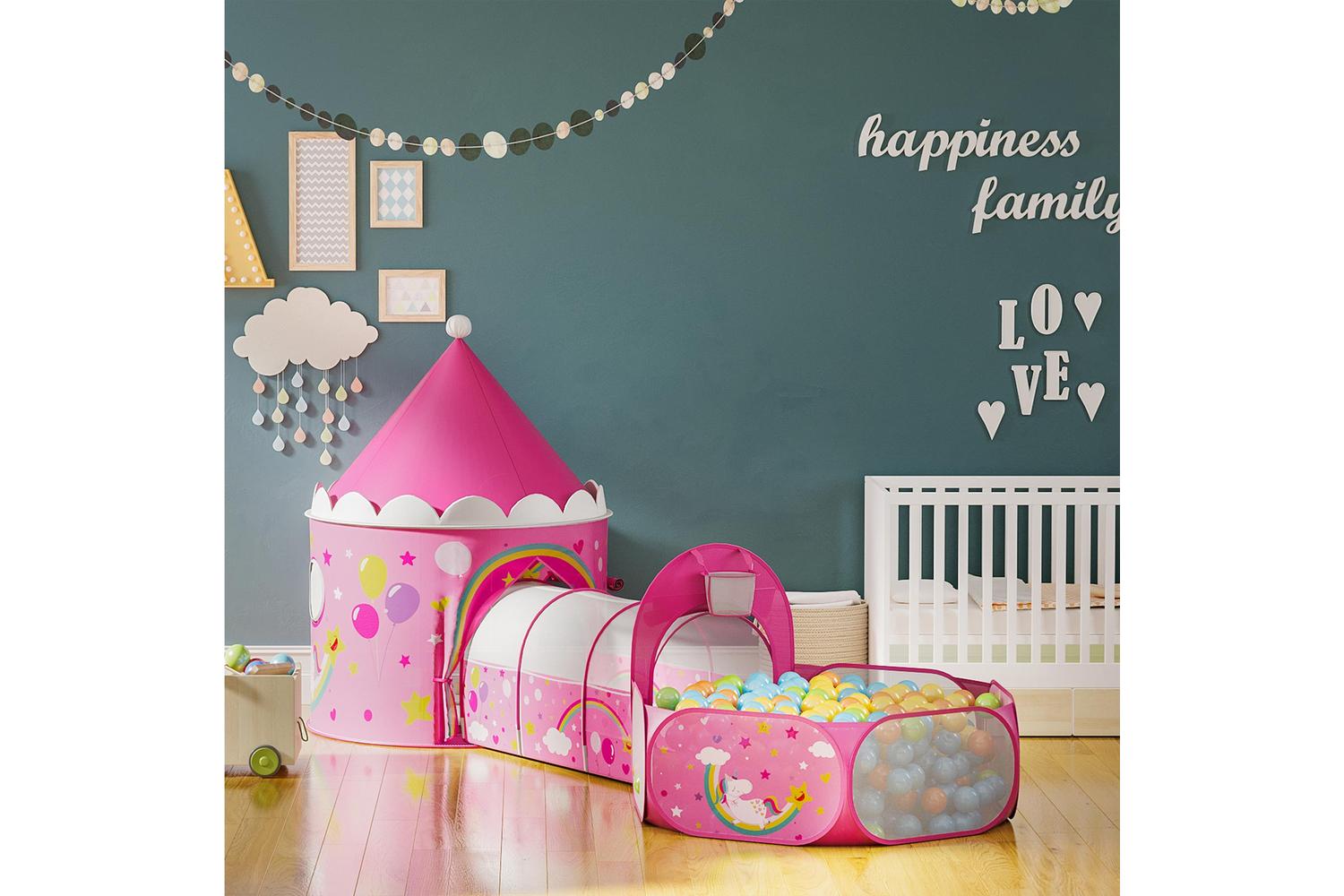 - Includes a spacious tent, tunnel, and ball pit for versatile play