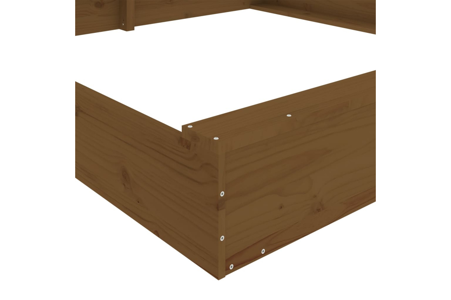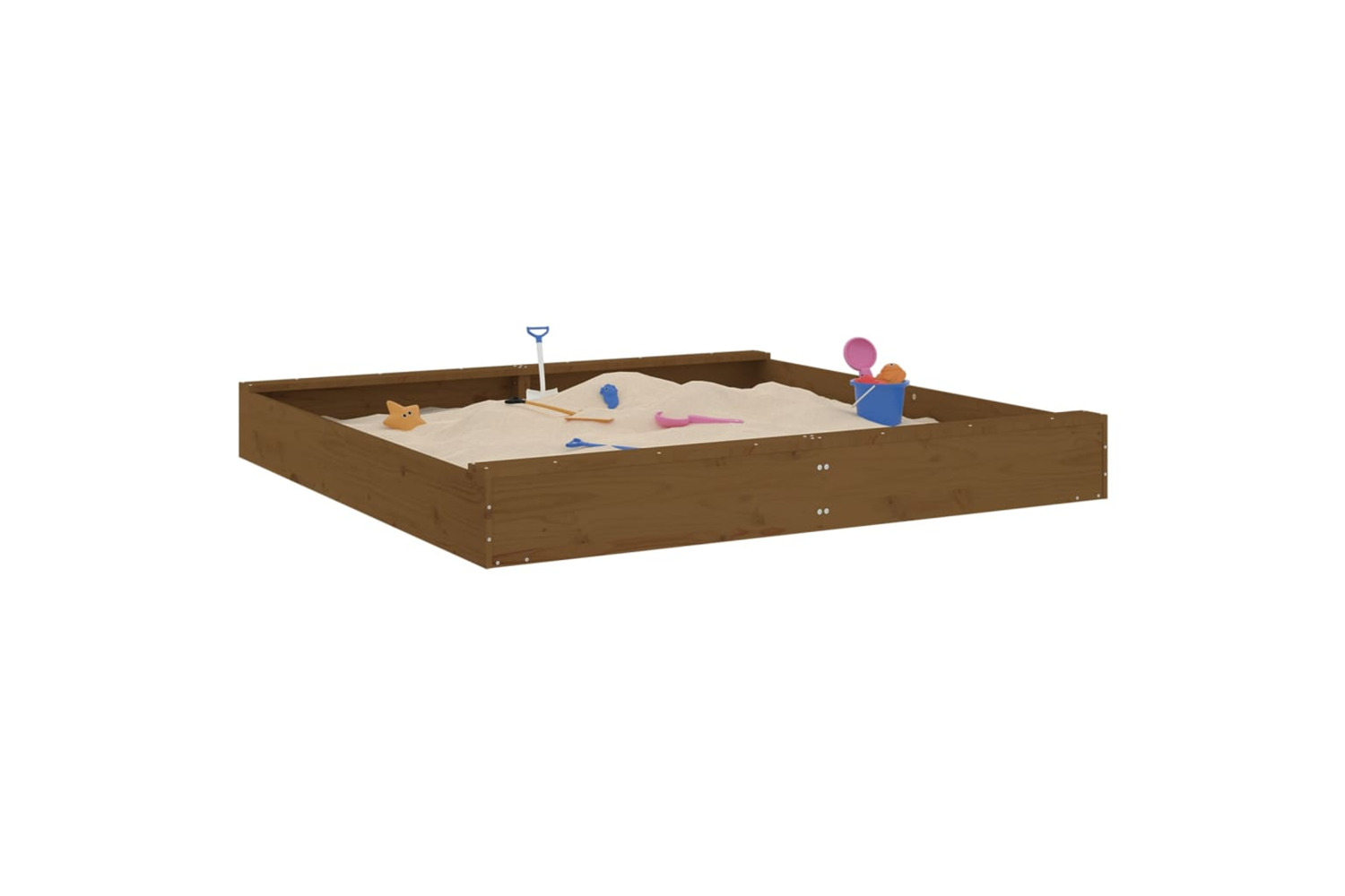 - Solid pine wood: Solid pine wood is a beautiful natural material. Pine wood has a straight grain, and the knots give the material its signature, rustic look. Made of solid pinewood, the sandpit is sturdy and stable.