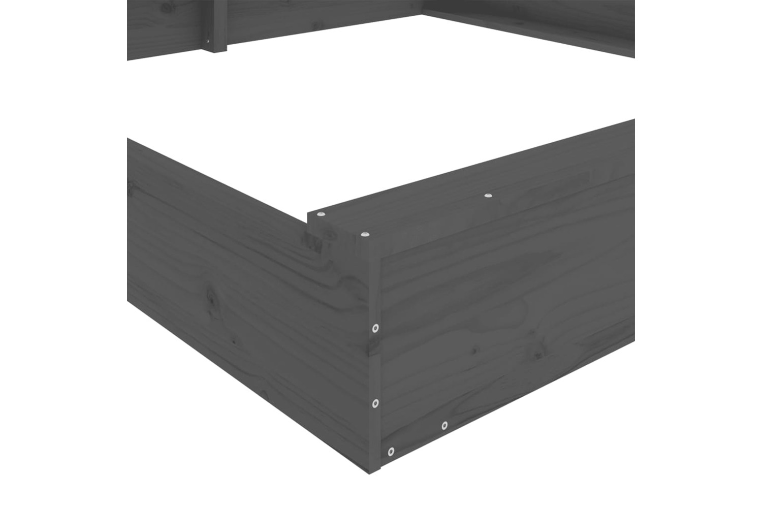 - Solid pine wood: Solid pine wood is a beautiful natural material. Pine wood has a straight grain, and the knots give the material its signature, rustic look. Made of solid pinewood, the sandpit is sturdy and stable.