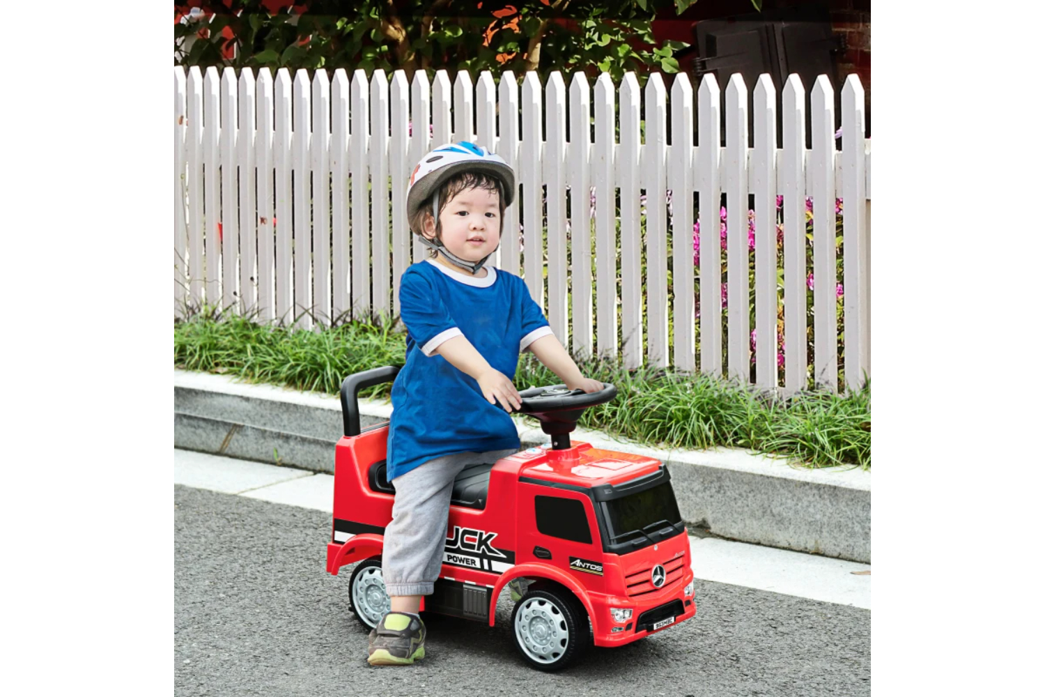 Keep your kids entertained whilst you're up and moving about with this baby ride on car from Homcom. Foot-to-floor to encourage them to exercise and walk along, it features a wide seat, a horn, under-seat storage and high backrest to ensure they're properly supporting. Doubling up as a handle, the backrest allows you to push children along for hours of engagement with kids. It's completed with an anti-overturning brake on the bottom if they slide or push too hard, making it safe when in us.