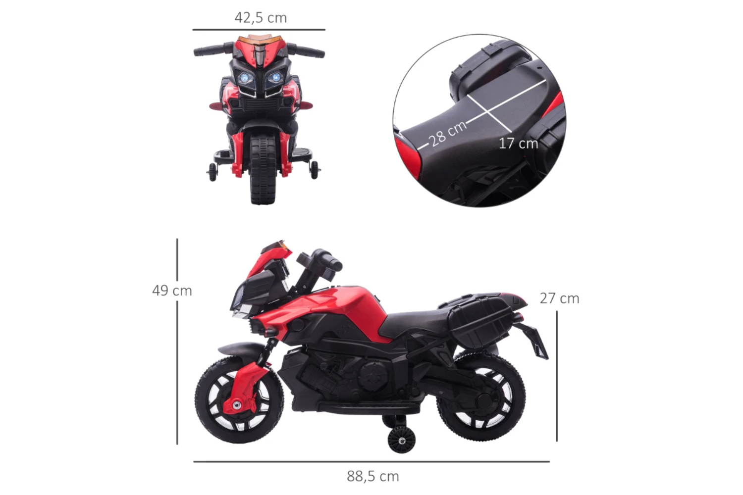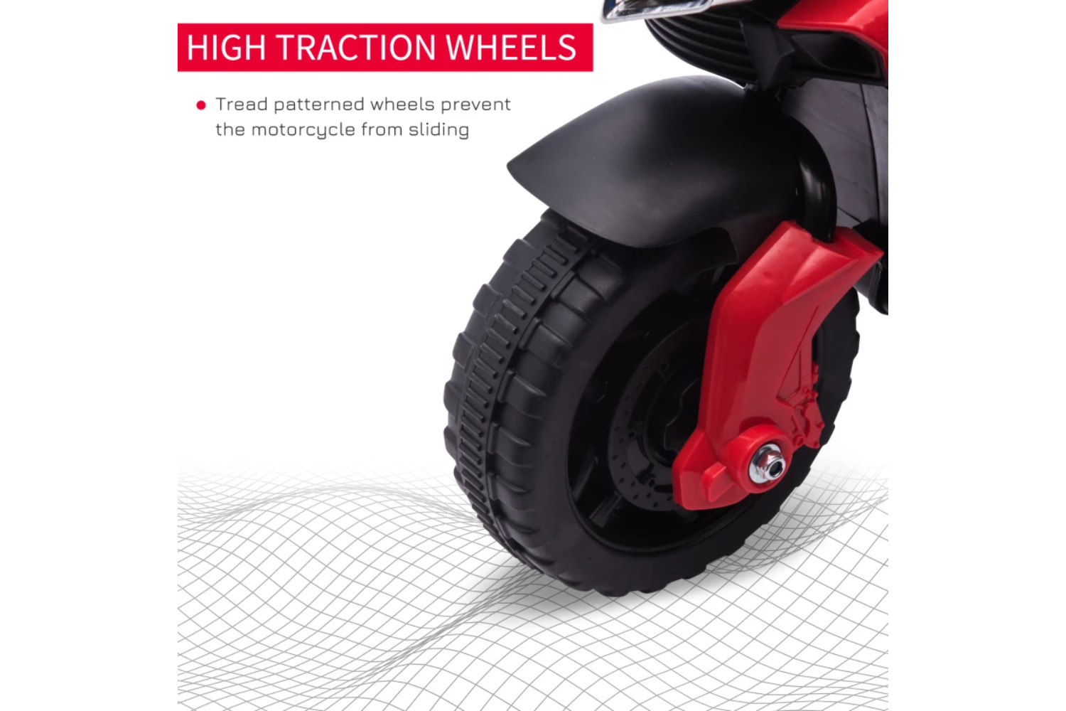 Fulfil their need for speed with this ride-on motorcycle from Homcom. It has a working horn and working headlights for an interactive experience while using its pedals to go forward and backward. A large seat and handlebars allow you to sit and hold on. The wheels provide constant balance for ultimate safety. The motorcycle comes with a rechargeable battery - a full charge lasts up to 45 minutes of playtime. This motorcycle brings excitement to any child's playtime and takes kids on an exciting adventure!