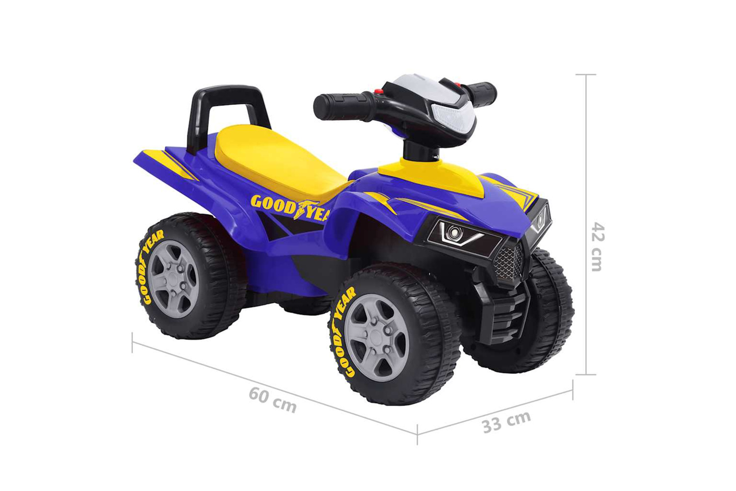 This super cool Good Year ride-on quad, featuring iconic design, is a wonderful toy that gives your children the ultimate riding experience. It is officially licensed by Good Year.