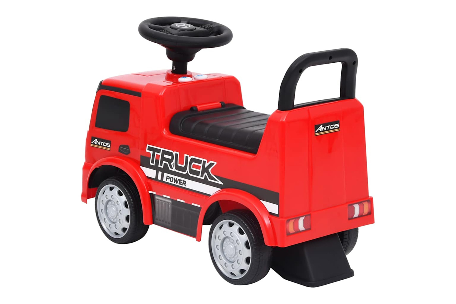 The ride-on car has a steering wheel, a low-lying seat and an ergonomically designed backrest that makes it easy to get on and off. The backrest can double as a push bar for parents. The large storage space under the seat can accommodate a lot of toys and other supplies that your children would like to take along on their adventures. Thanks to its durable plastic construction, this push car can support up to 25 kg and is suitable for kids between 12-36 months. This toy car also improves your kids' spatial awareness, dexterity and fine motor skills.