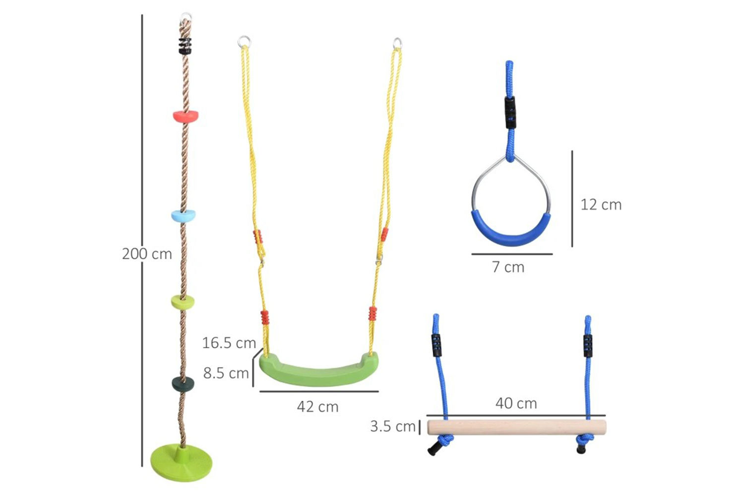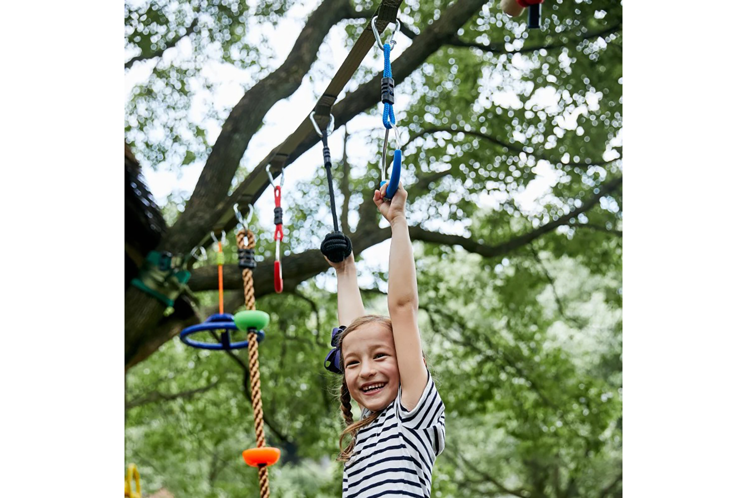 This is a great toy. There are plenty of options with all the accessories for all kids. We attached some parts to our swing set to change up how the kids were using it. It does take a bit of attention to get set up using the line provided