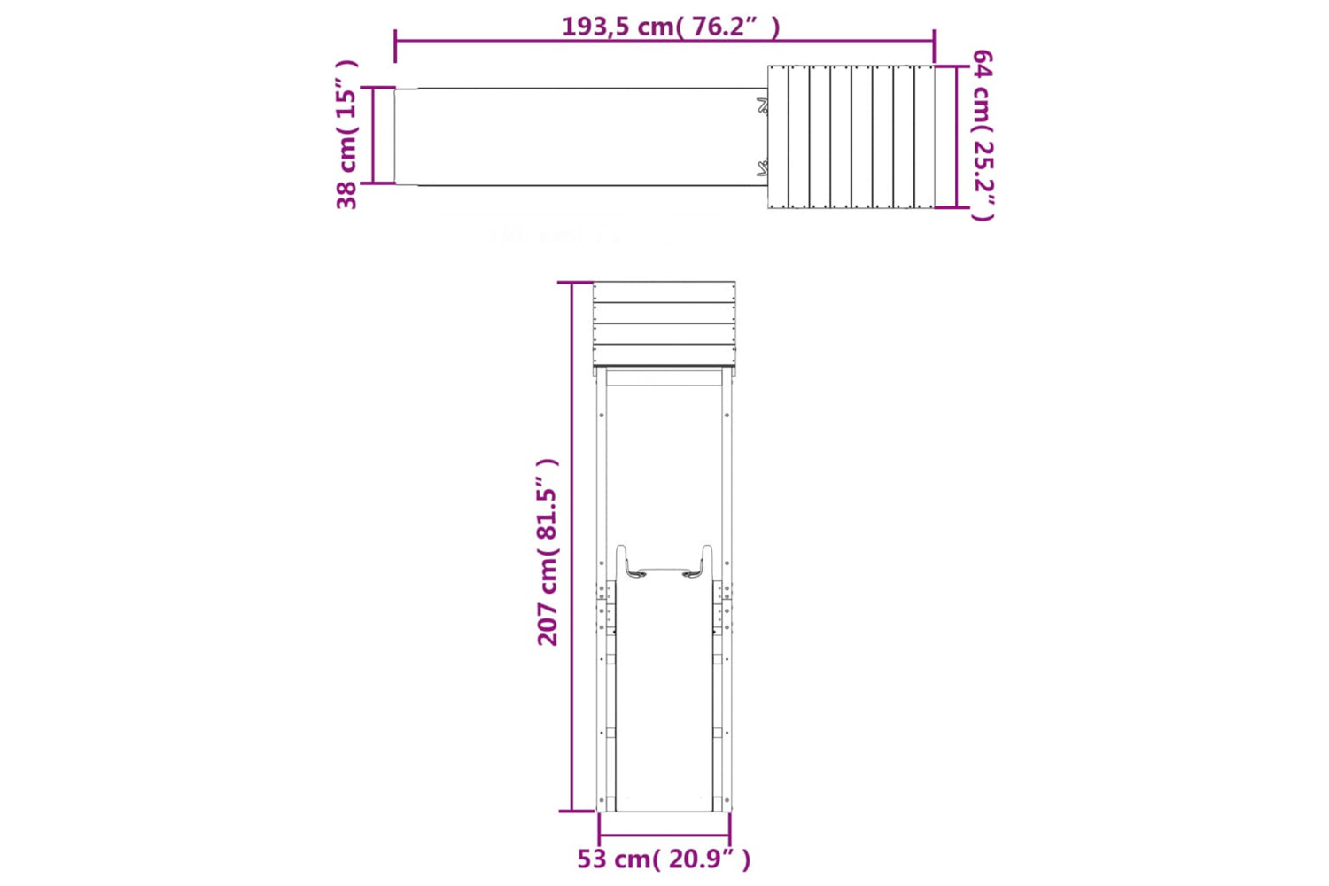 - Overall dimensions: 193.5 x 64 x 207 cm (L x W x H)