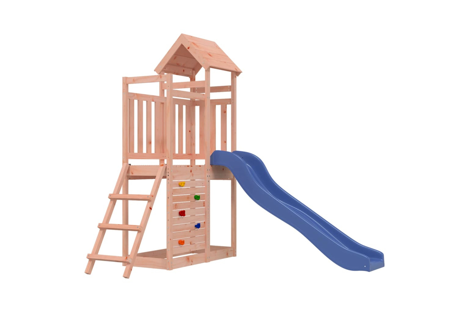 - Durable material: This climbing frame with slide is made of solid douglas wood. Solid douglas wood is a highly durable wood that works well for outdoors. Douglas wood is also strong enough to work with minimum care, even under the influence of the weather.