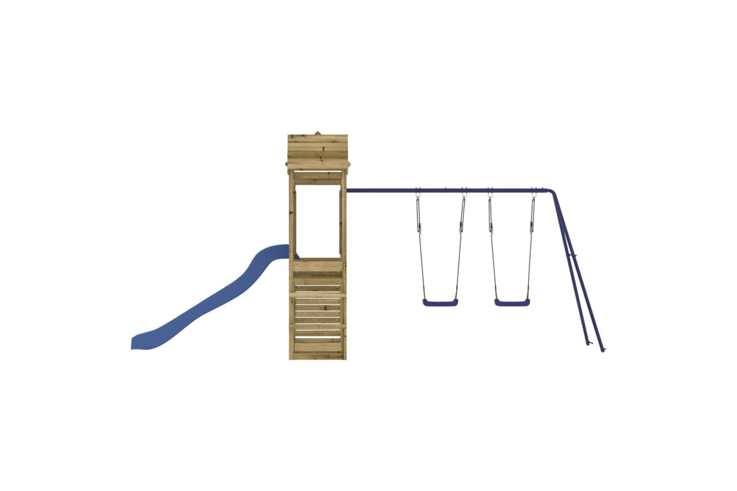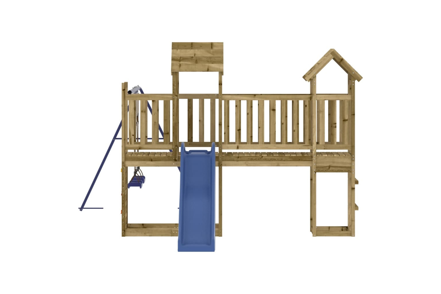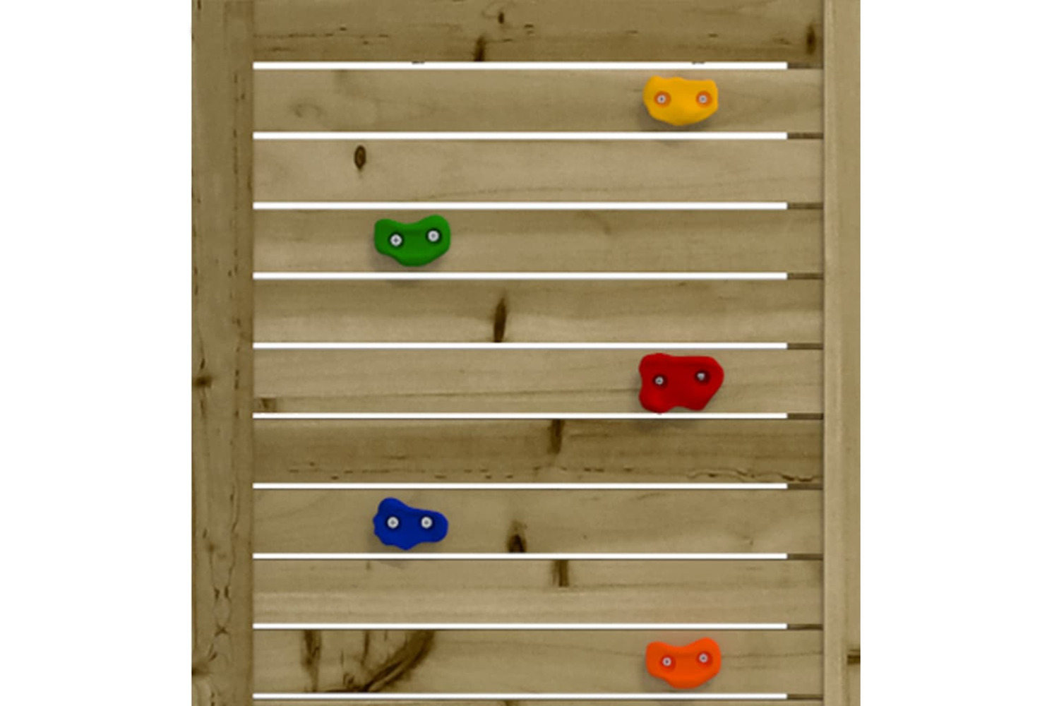- Durable material: This garden climbing frame is made of vacuum pressure impregnated pinewood. Solid pine wood is a beautiful natural material. Pine wood has a straight grain, and the knots give the material its signature, rustic look. Impregnation is a preservation process that is carried out by using autoclaves. The pressure-treatment increases resistance to decay and weather.