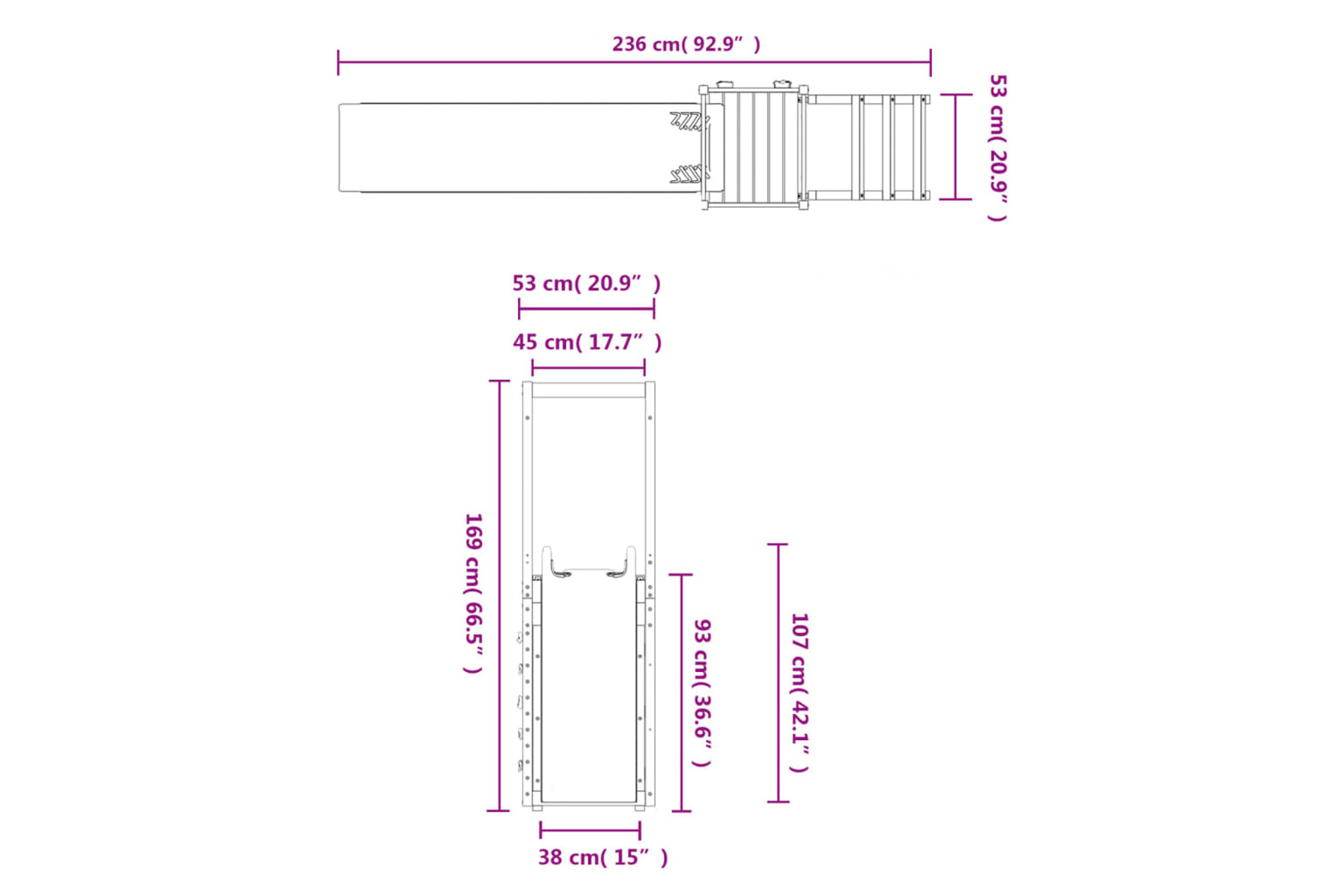 - Overall dimensions: 236 x 53 x 169 cm (L x W x H)
