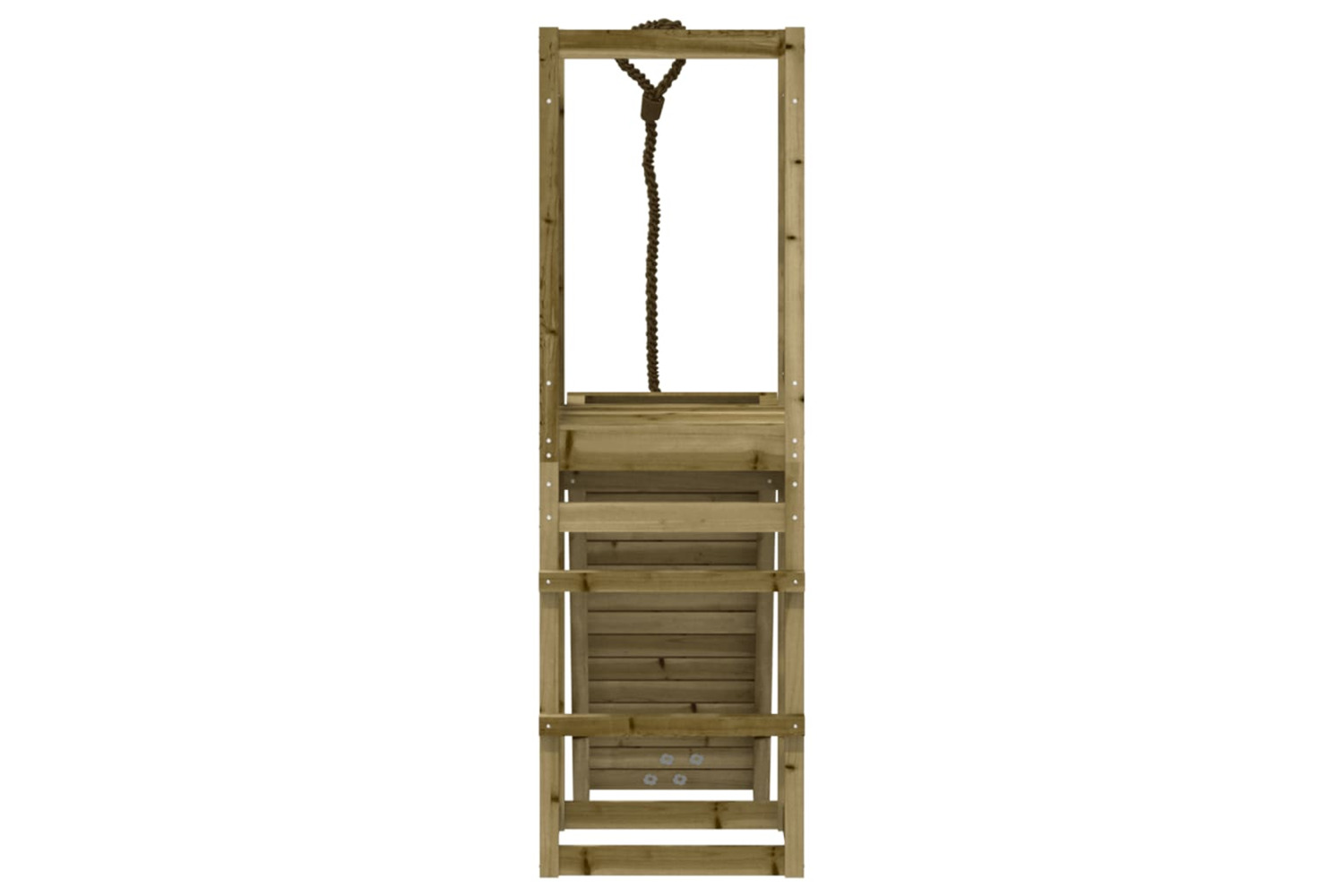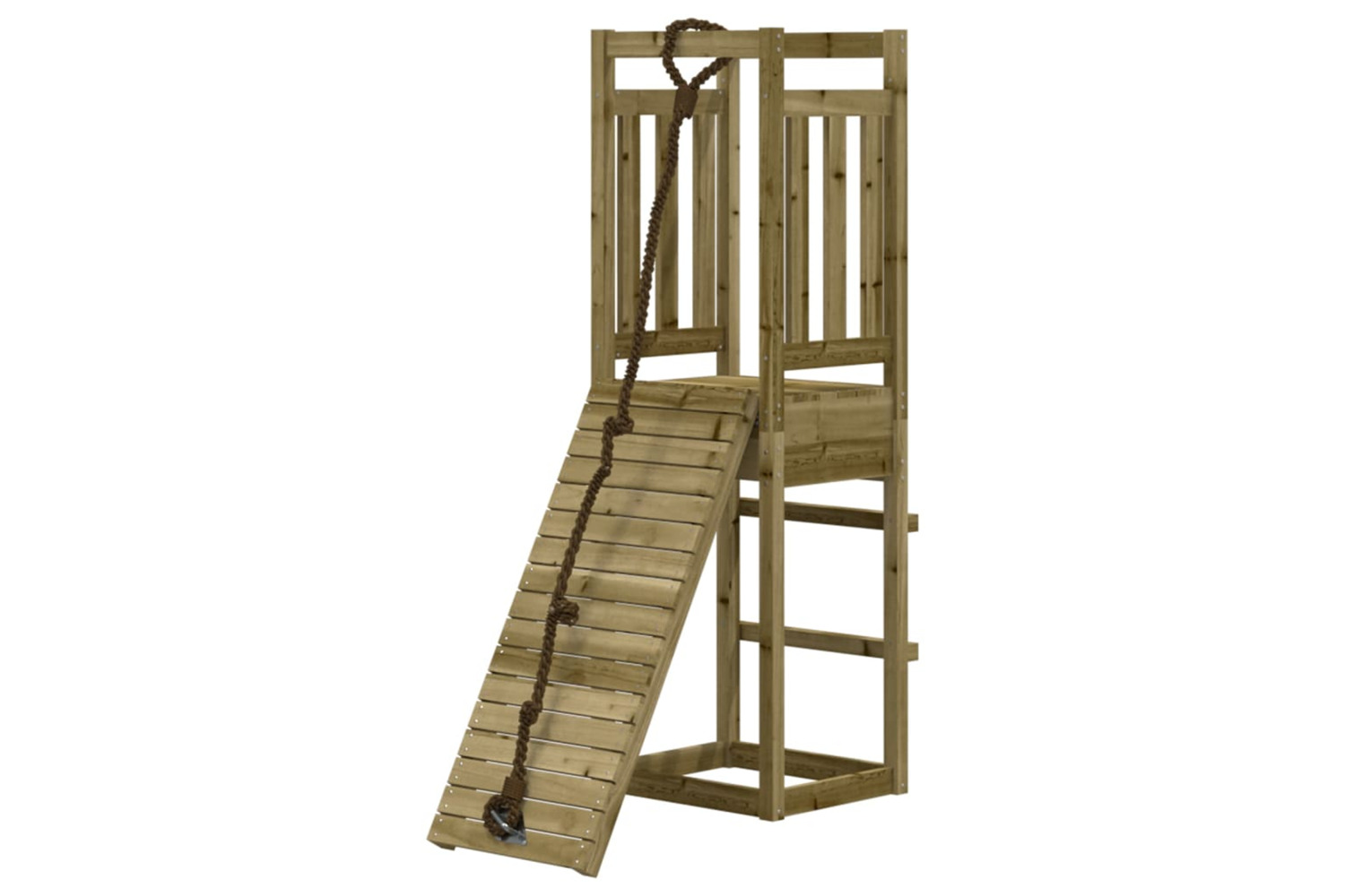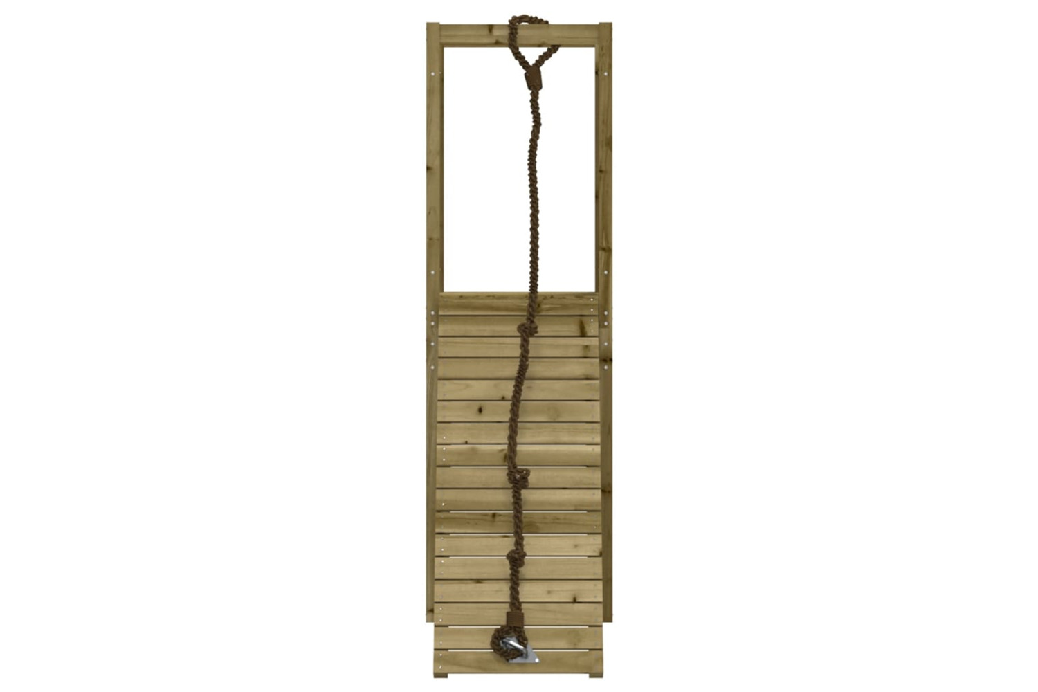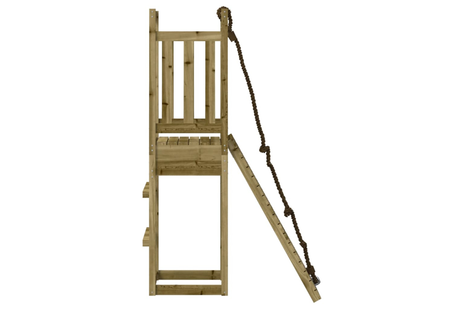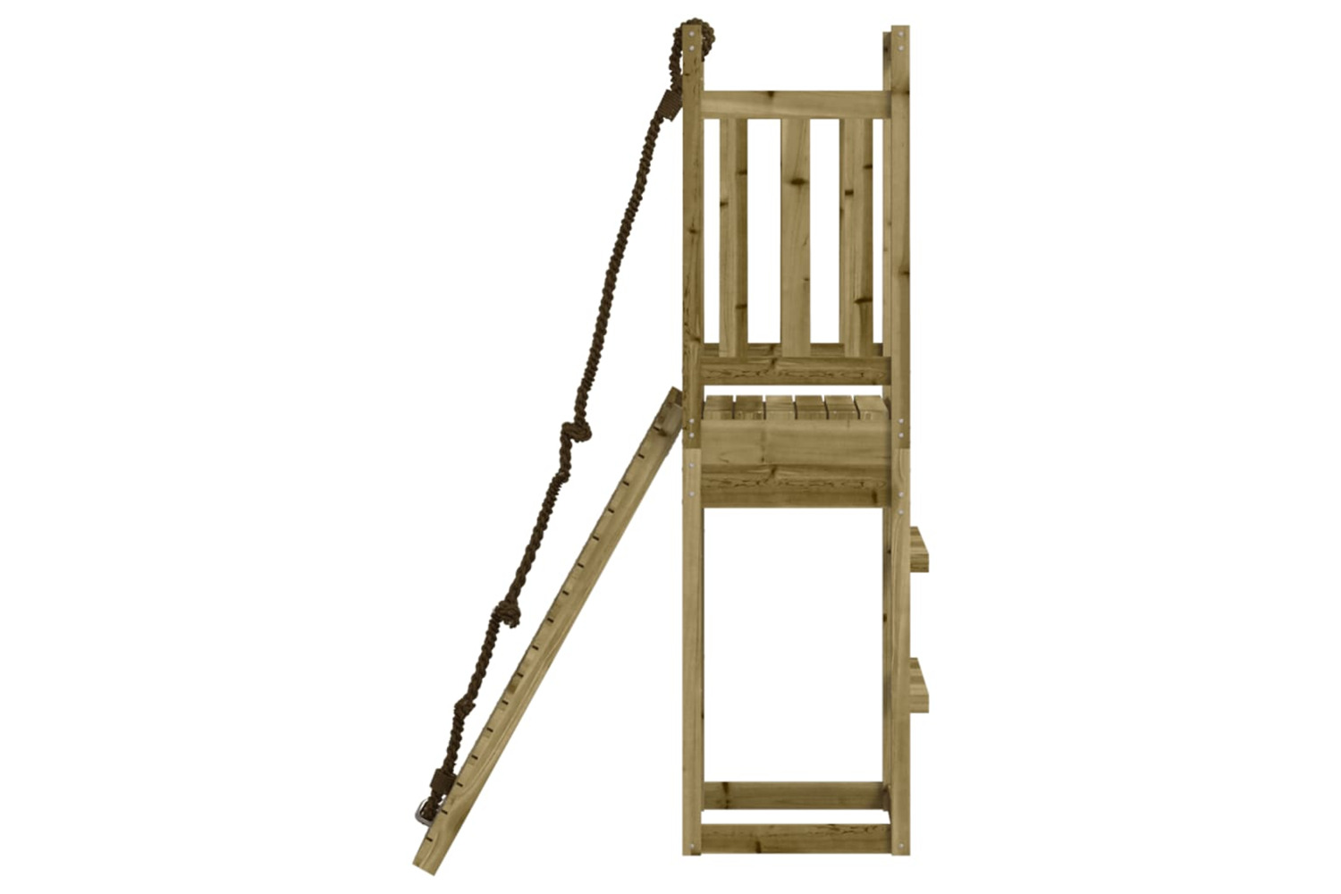 - Impregnated wood: This garden climbing frame is made of vacuum pressure impregnated pinewood. Solid pine wood is a beautiful natural material. Pine wood has a straight grain, and the knots give the material its signature, rustic look. Impregnation is a preservation process that is carried out by using autoclaves. The pressure-treatment increases resistance to decay and weather.