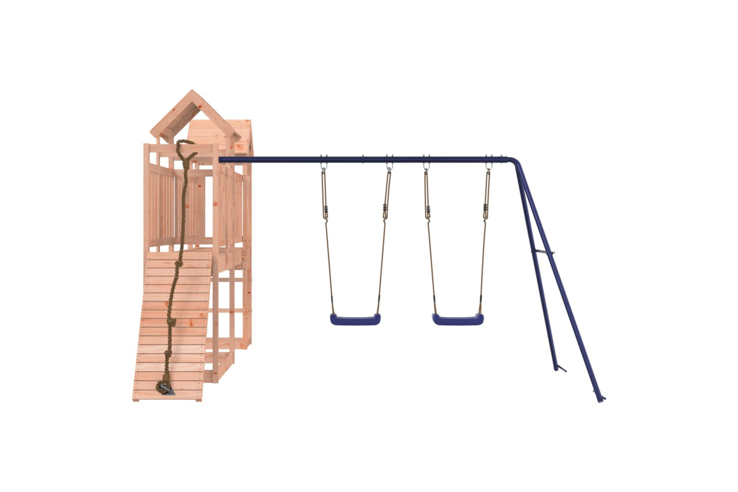 - Sturdy and stable frame: The wooden frame of the garden climbing frame ensures sturdiness and stability. In addition, the "A" shaped legs of the children's swing allow for balance.