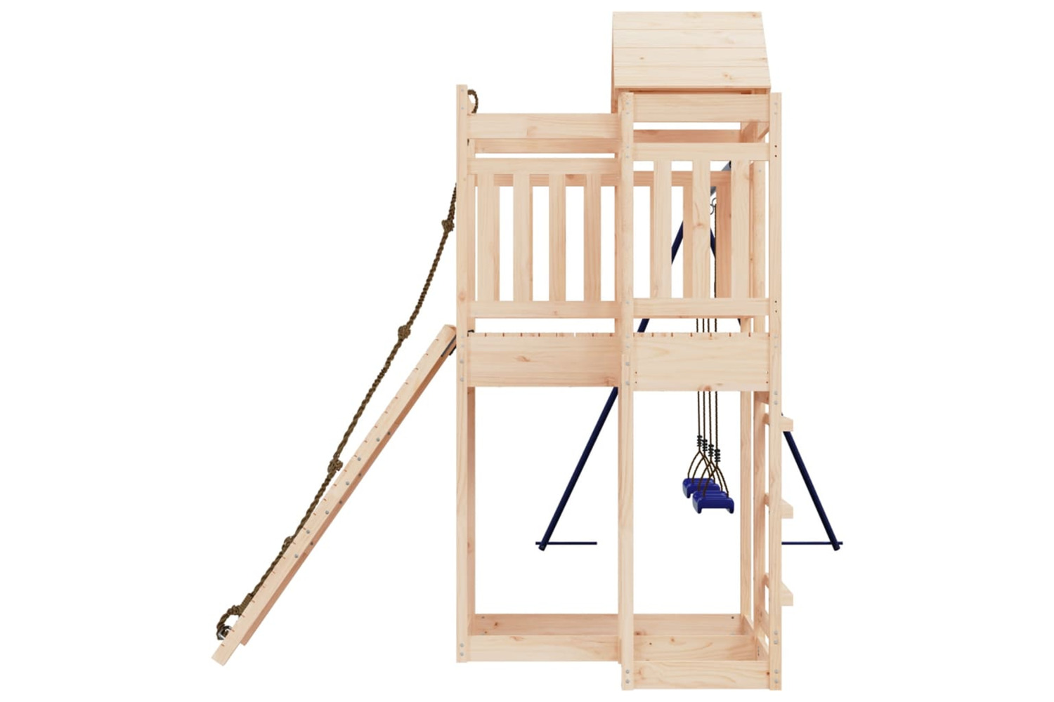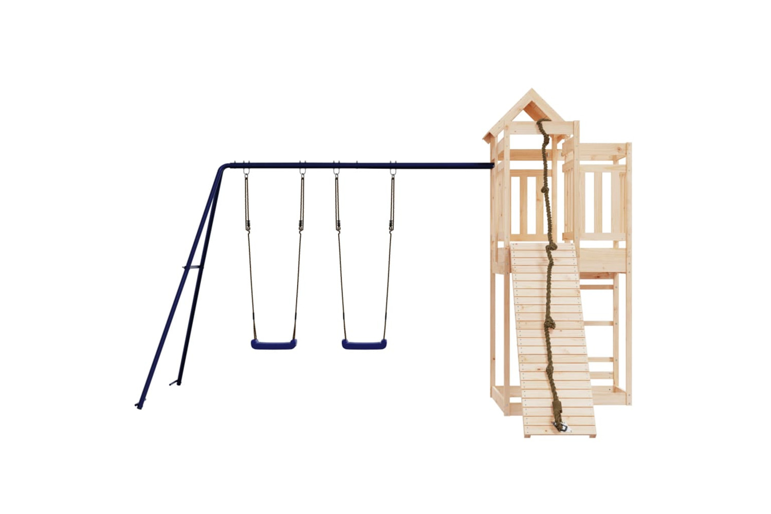 - Sturdy and stable frame: The wooden frame of the playset ensures sturdiness and stability. In addition, the "A" shaped legs of the children's swing allow for balance.