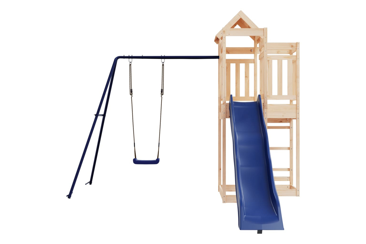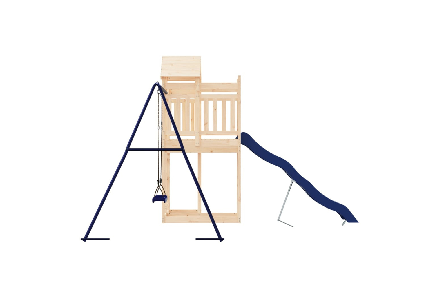 - Sturdy and stable frame: The wooden frame of the playset ensures sturdiness and stability. In addition, the "A" shaped legs of the children's swing allow for balance.