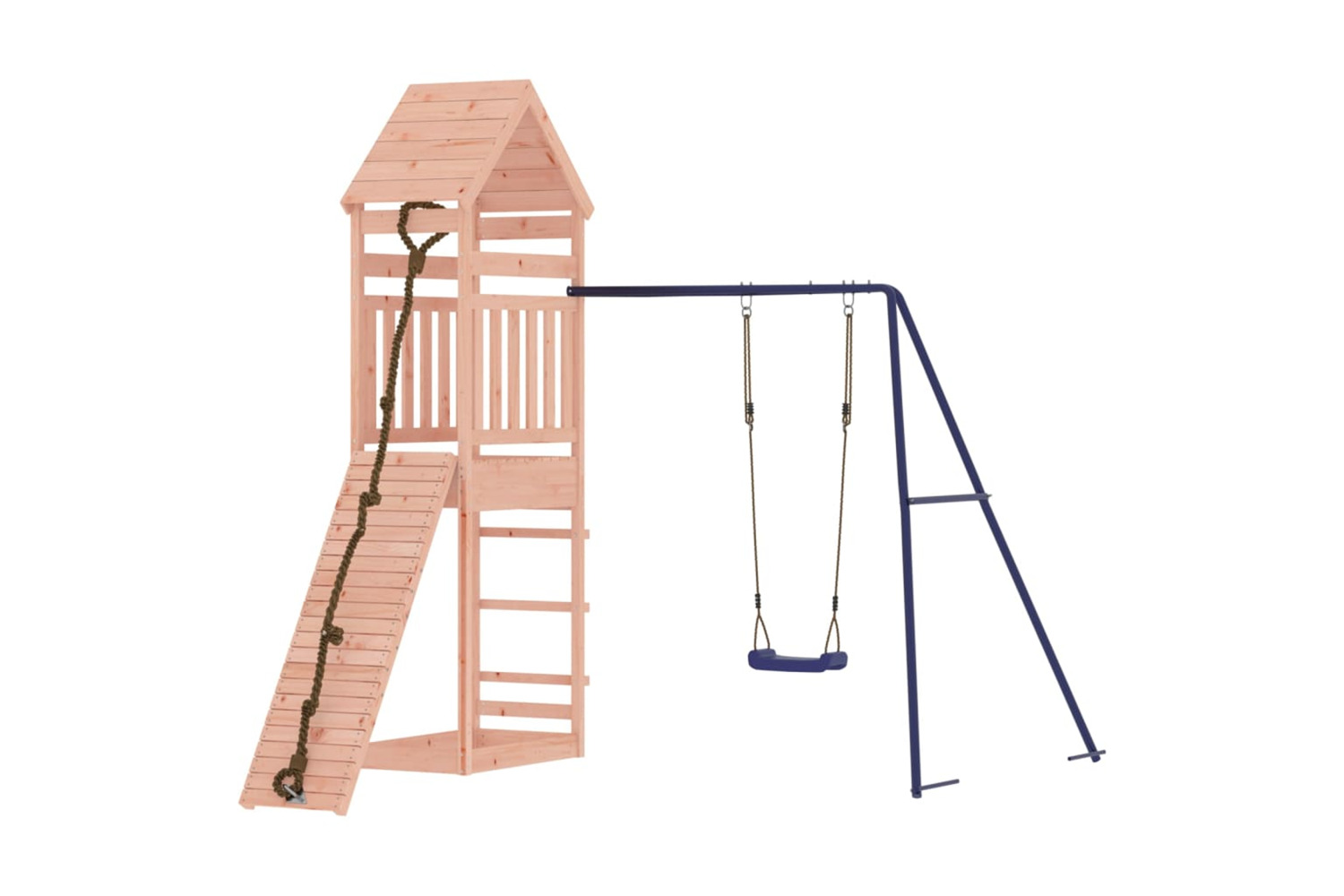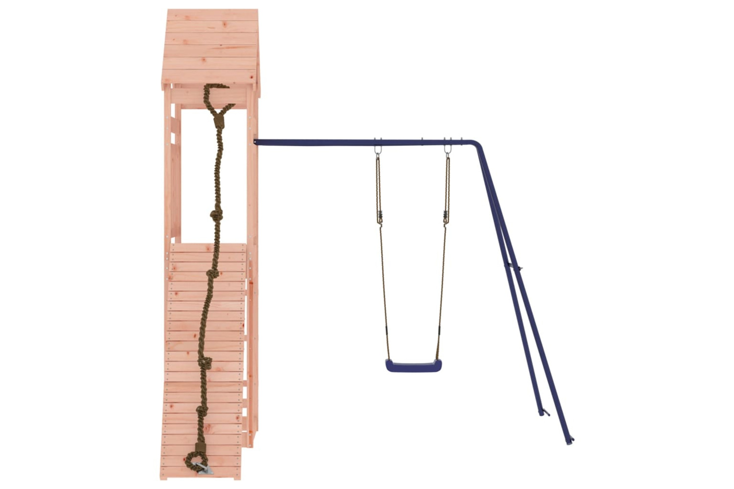 - Sturdy and stable frame: The wooden frame of the playset ensures sturdiness and stability. In addition, the "A" shaped legs of the children's swing allow for balance.