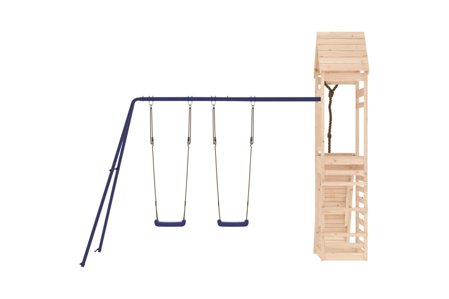 - Sturdy and stable frame: The wooden frame of the playset ensures sturdiness and stability. In addition, the "A" shaped legs of the children's swing allow for balance.