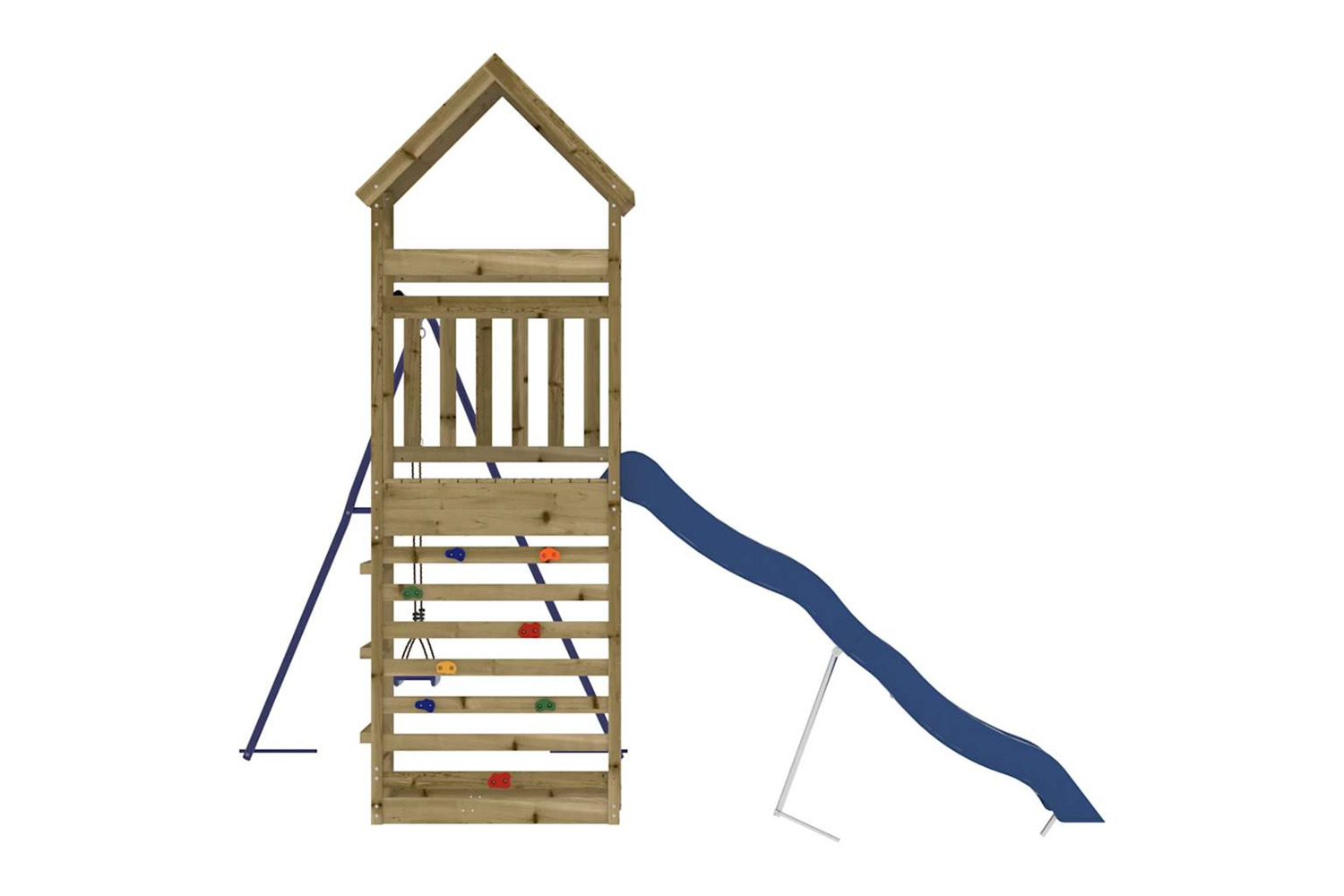 - Multi-activity centres: The climbing frame features a 90 cm height platform and stands out with its rockwall, a wave slide, a single swing set as well as a sandpit. Your little ones can also invite their friends to join the fun.