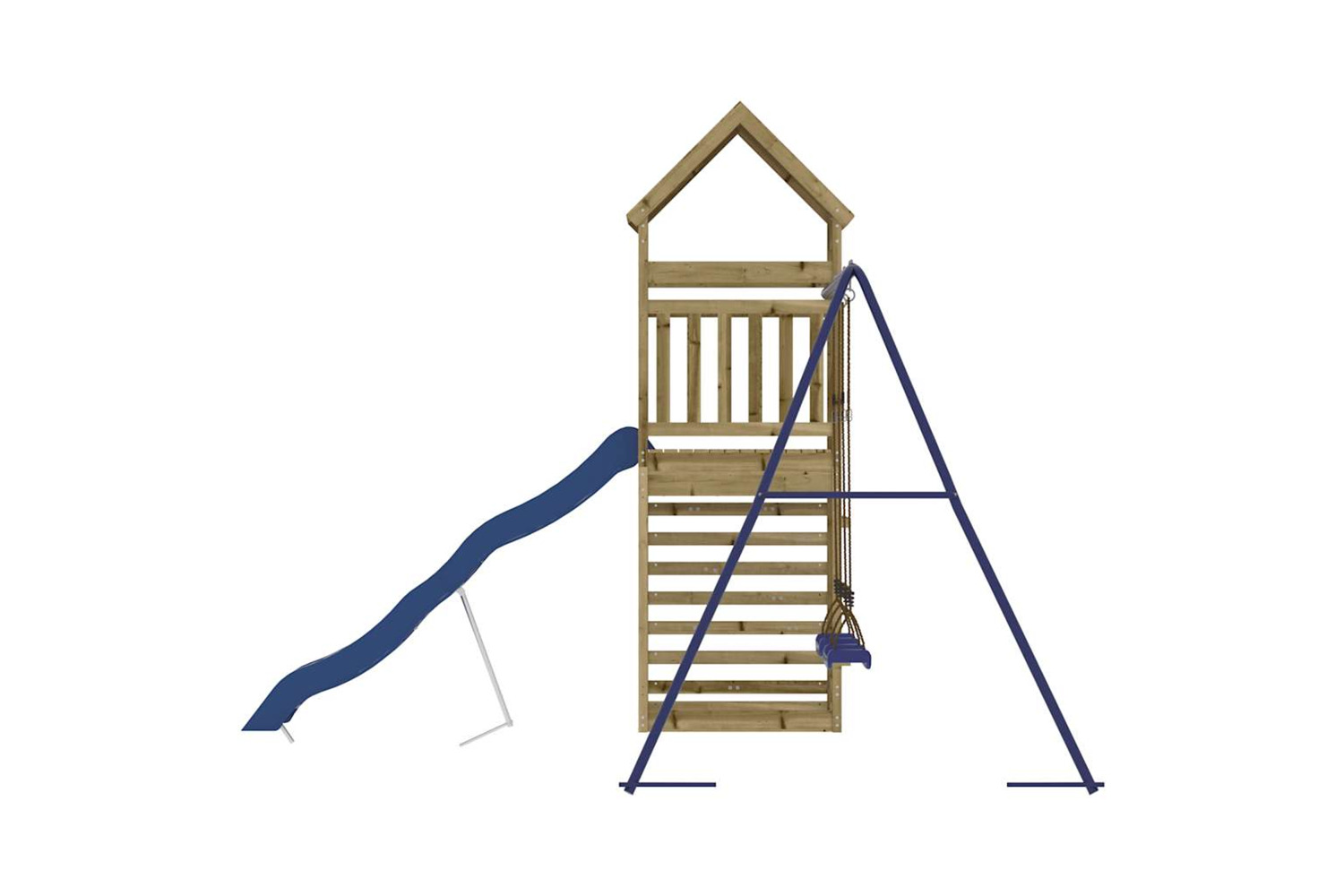 - Sturdy and stable frame: The wooden frame of the playset ensures sturdiness and stability. In addition, the "A" shaped legs of the children's swing allow for balance.