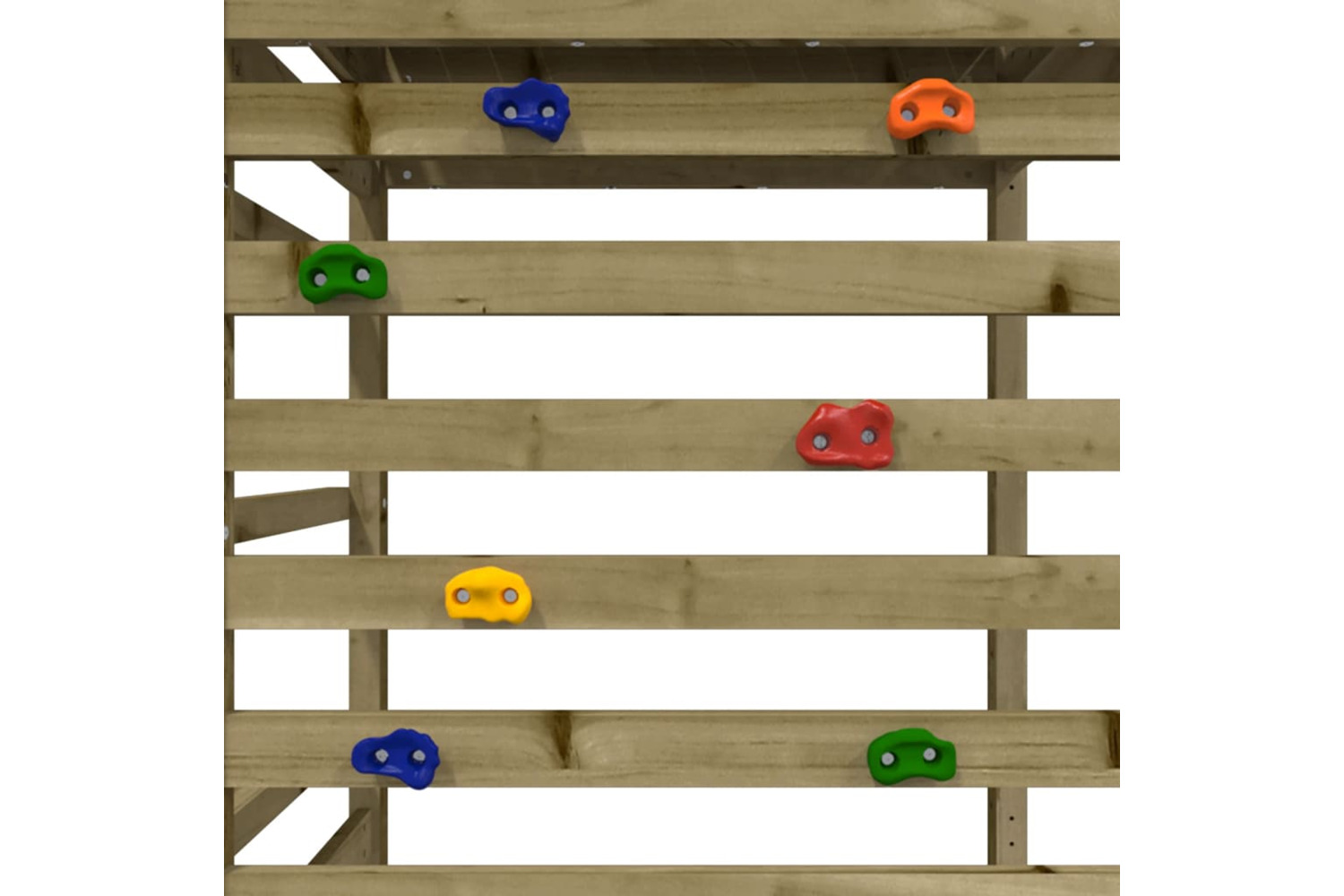 - Impregnated wood: This garden climbing frame is made of vacuum pressure impregnated pinewood. Solid pine wood is a beautiful natural material. Pine wood has a straight grain, and the knots give the material its signature, rustic look. Impregnation is a preservation process that is carried out by using autoclaves. The pressure-treatment increases resistance to decay and weather.