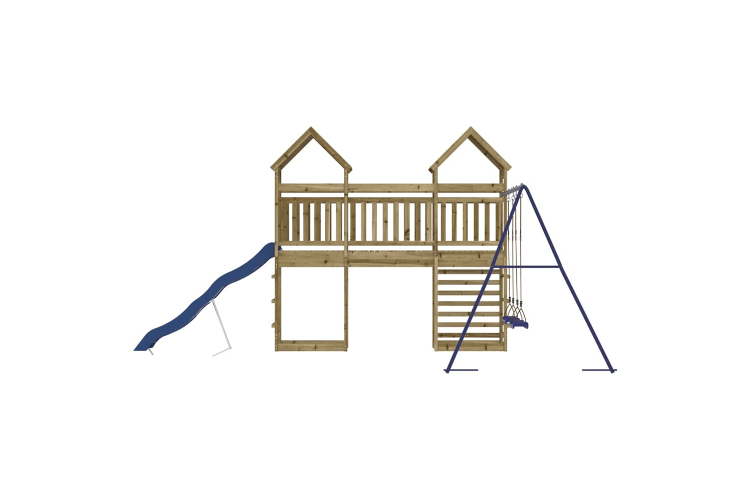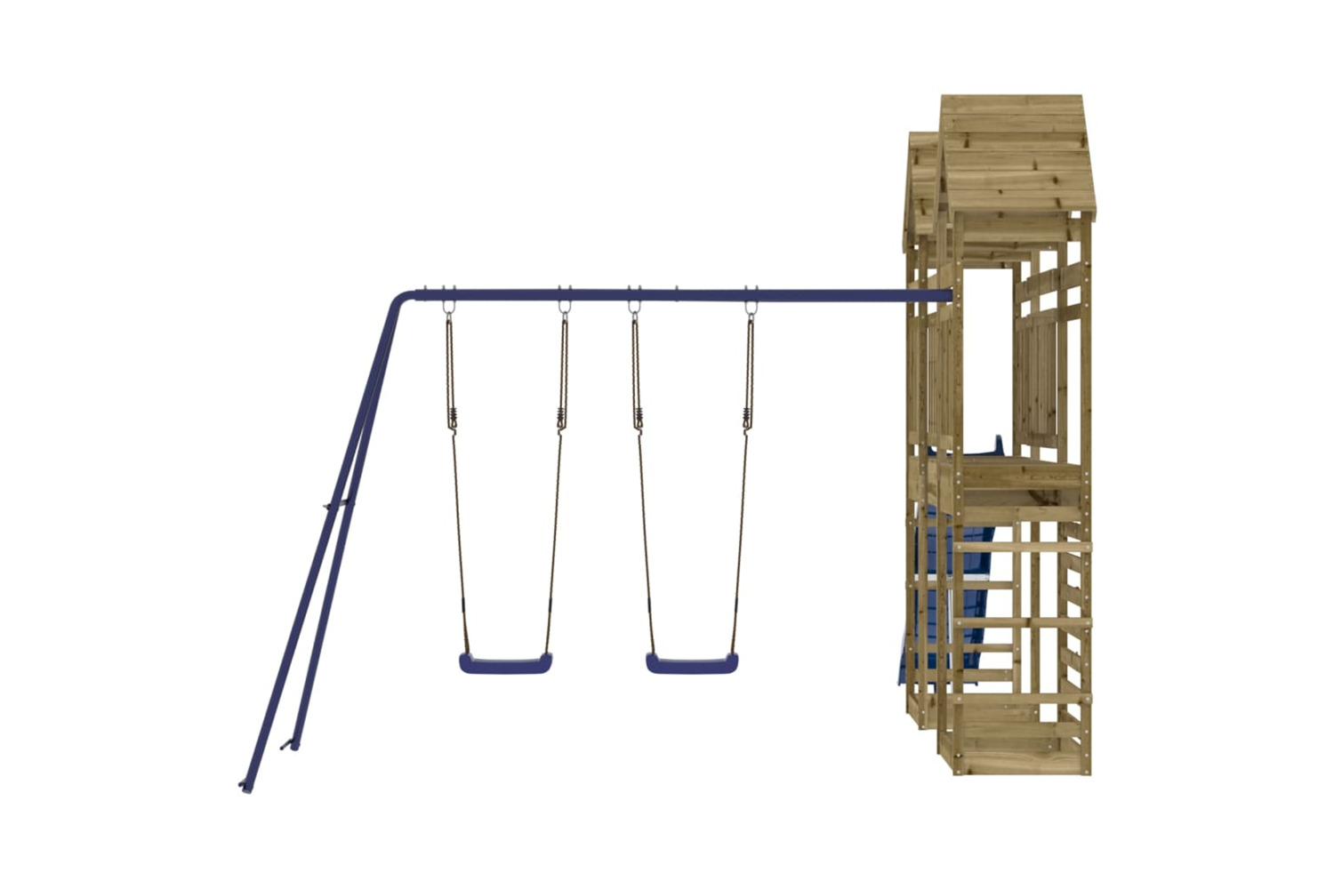 - Sturdy and stable frame: The wooden frame of the playset ensures sturdiness and stability. In addition, the "A" shaped legs of the children's swing allow for balance.