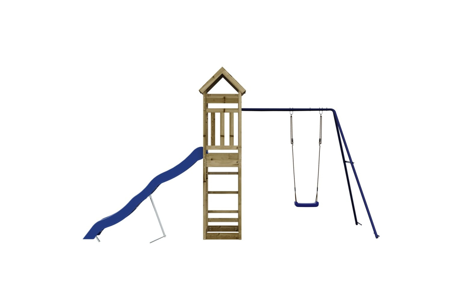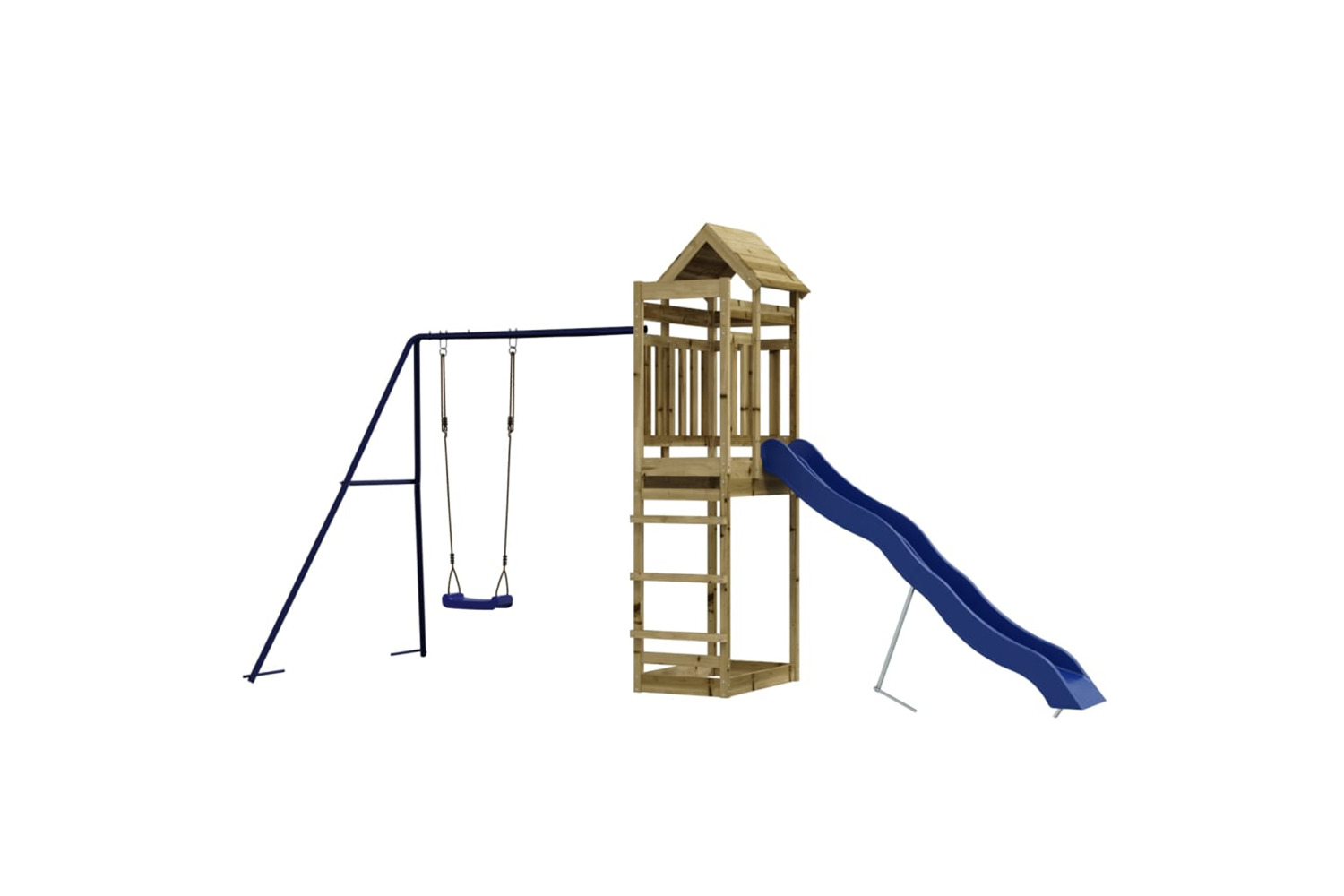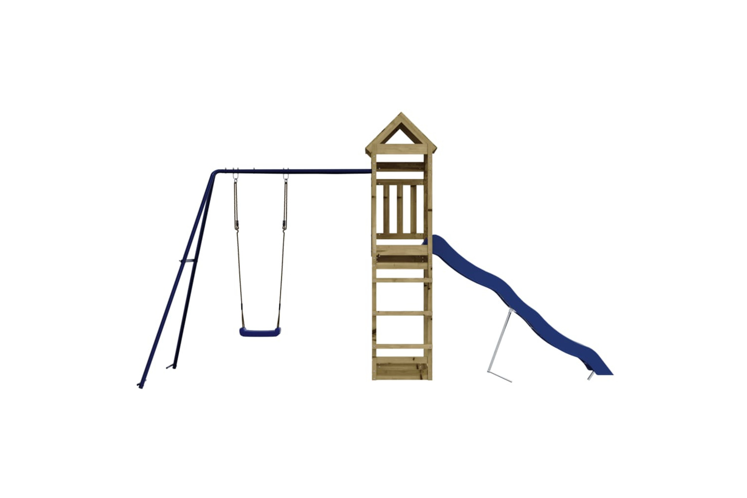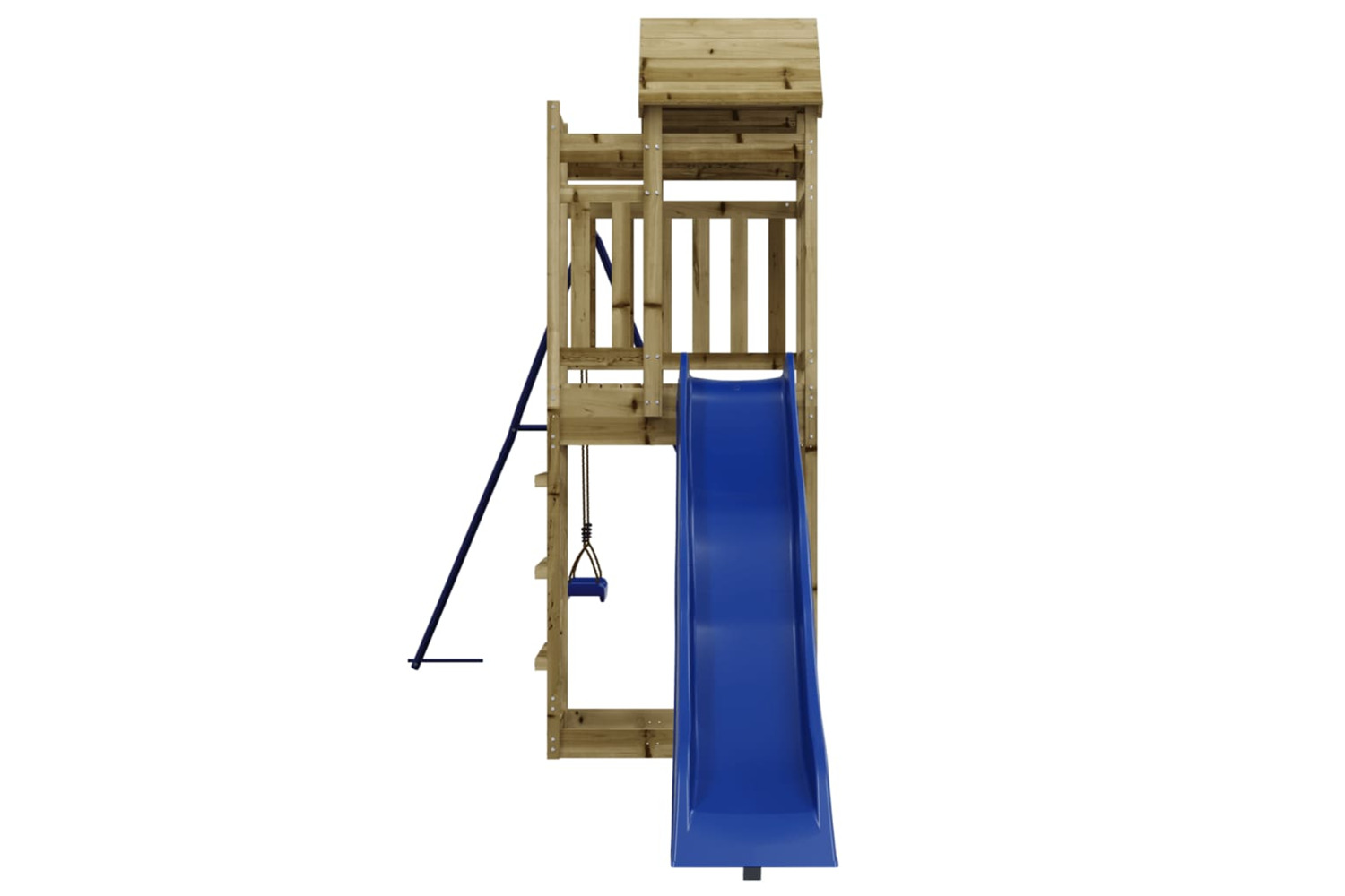 - Impregnated wood: This garden climbing frame is made of vacuum pressure impregnated pinewood. Solid pine wood is a beautiful natural material. Pine wood has a straight grain, and the knots give the material its signature, rustic look. Impregnation is a preservation process that is carried out by using autoclaves. The pressure-treatment increases resistance to decay and weather.