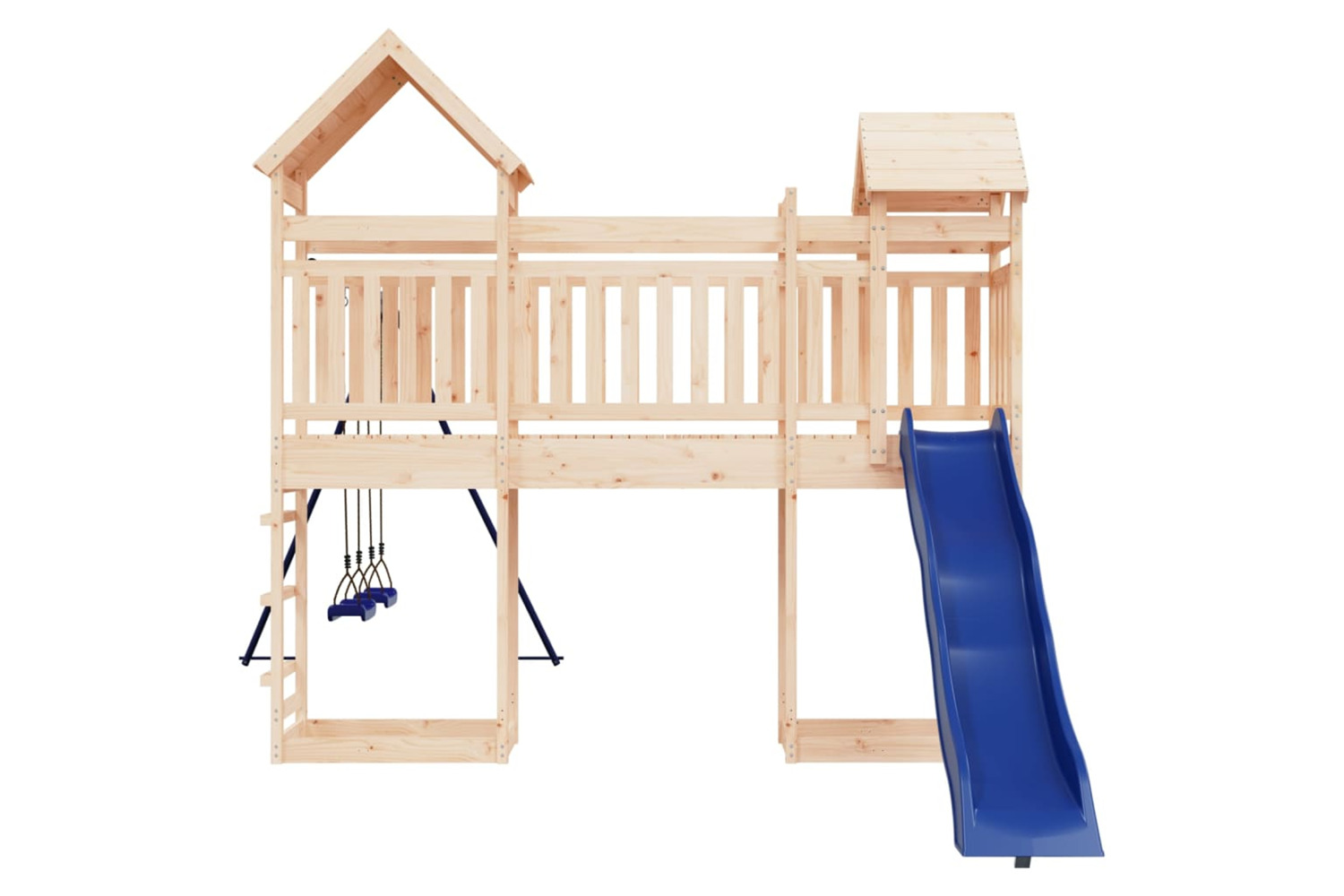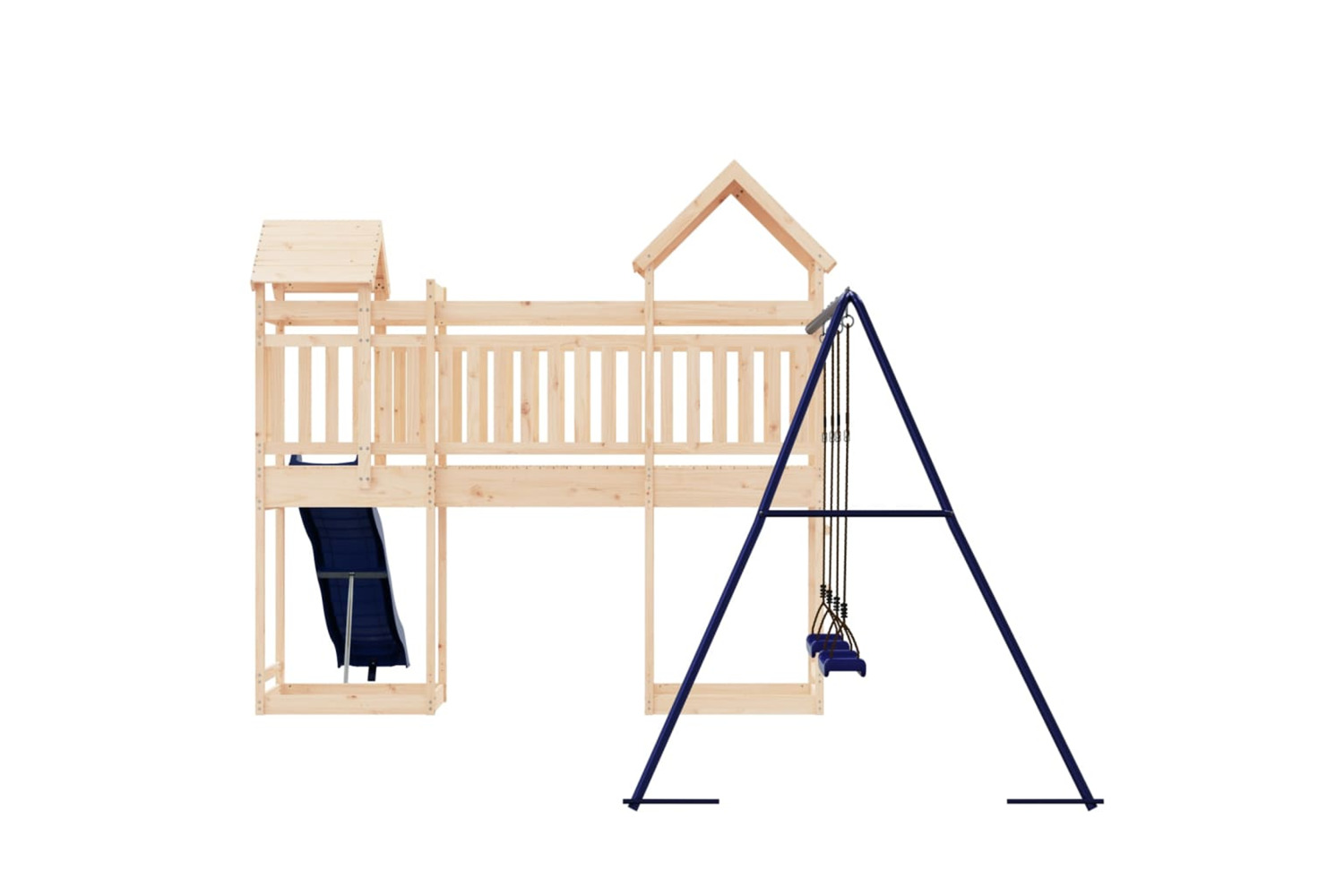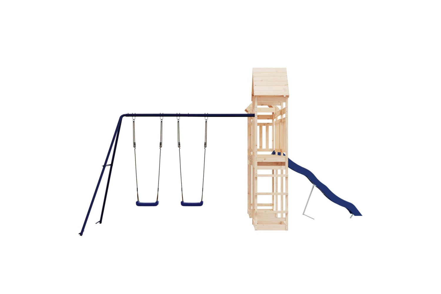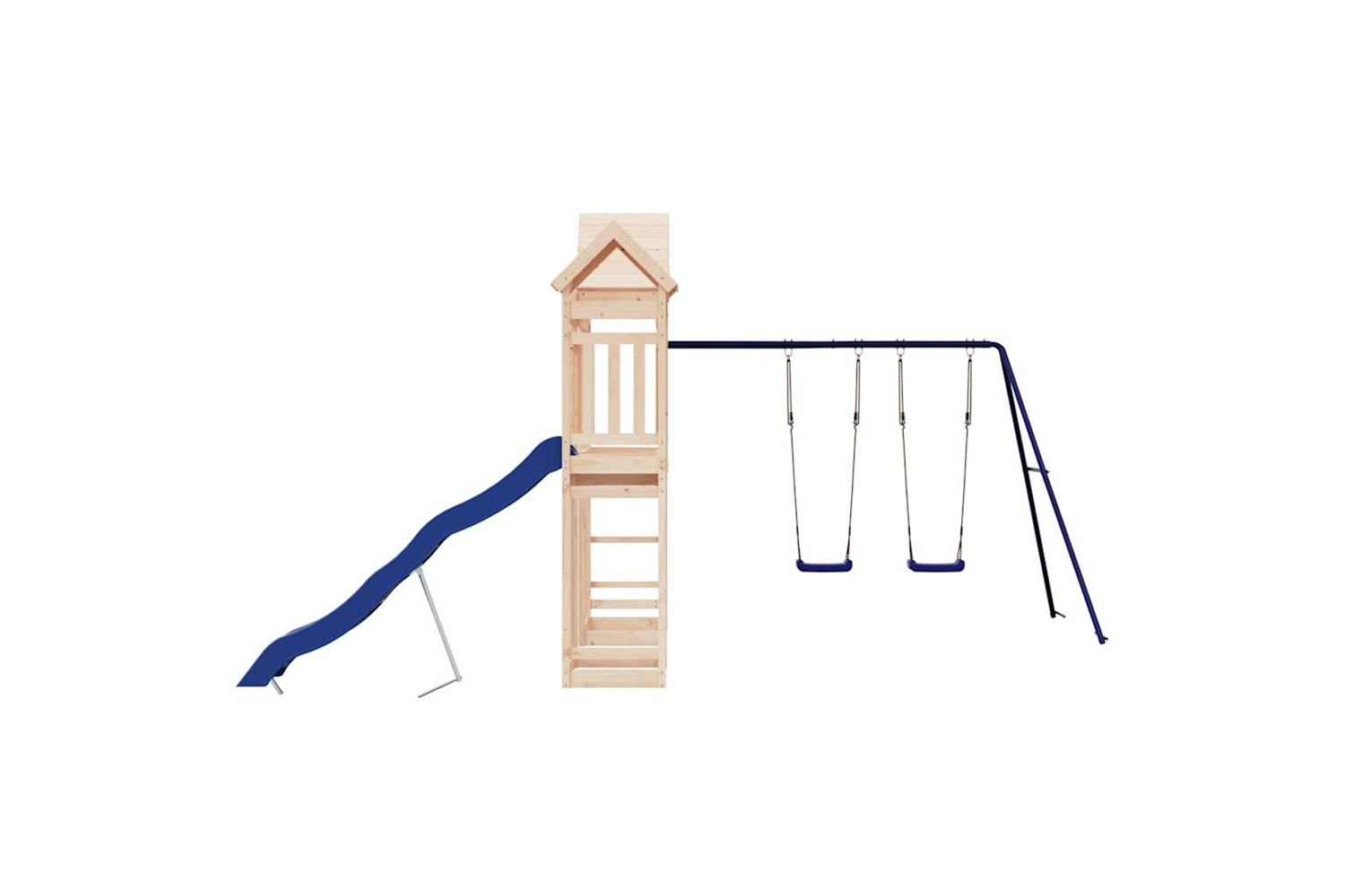 - Sturdy and stable frame: The wooden frame of the playset ensures sturdiness and stability. In addition, the "A" shaped legs of the children's swing allow for balance.