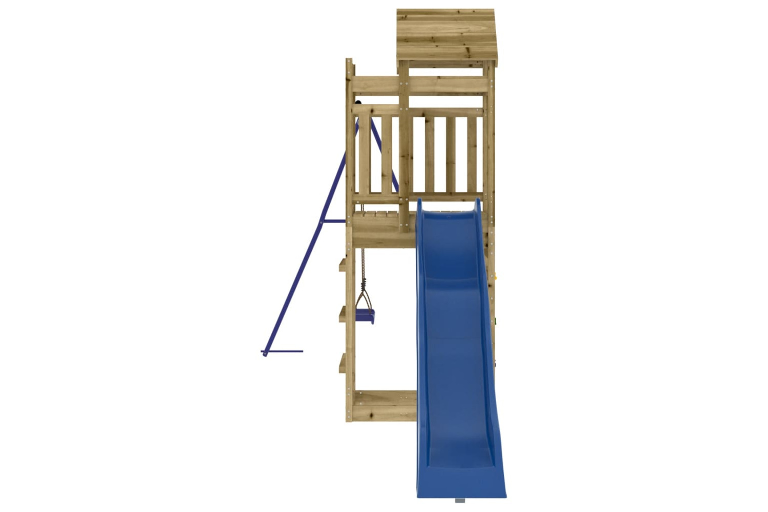 - Sturdy and stable frame: The wooden frame of the playset ensures sturdiness and stability. In addition, the "A" shaped legs of the children's swing allow for balance.